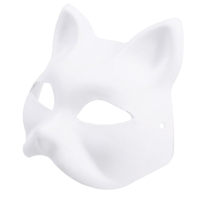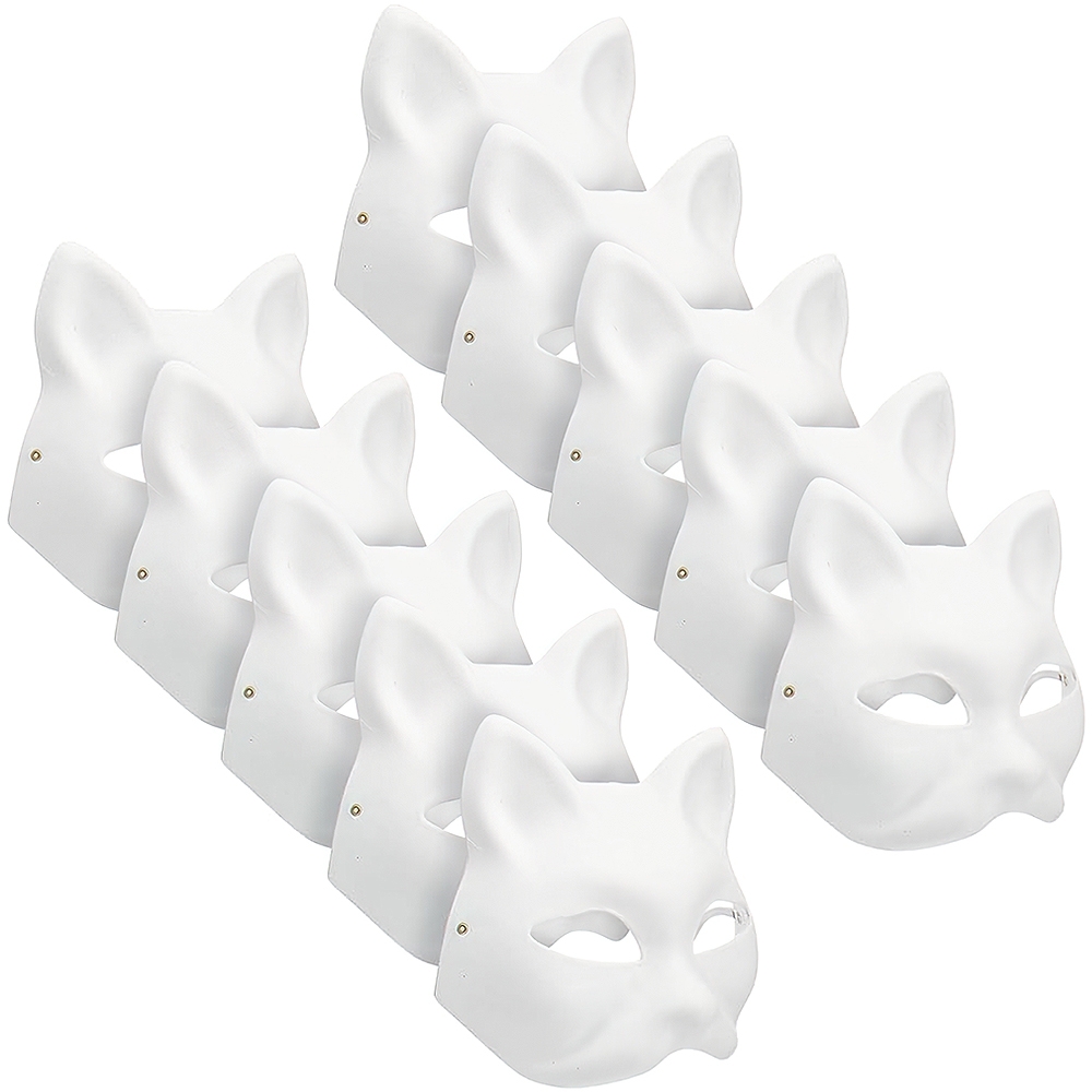 DIY-sett med 10 hvite kattemasker for hobby, fest og kreativ moro for barn og voksne.