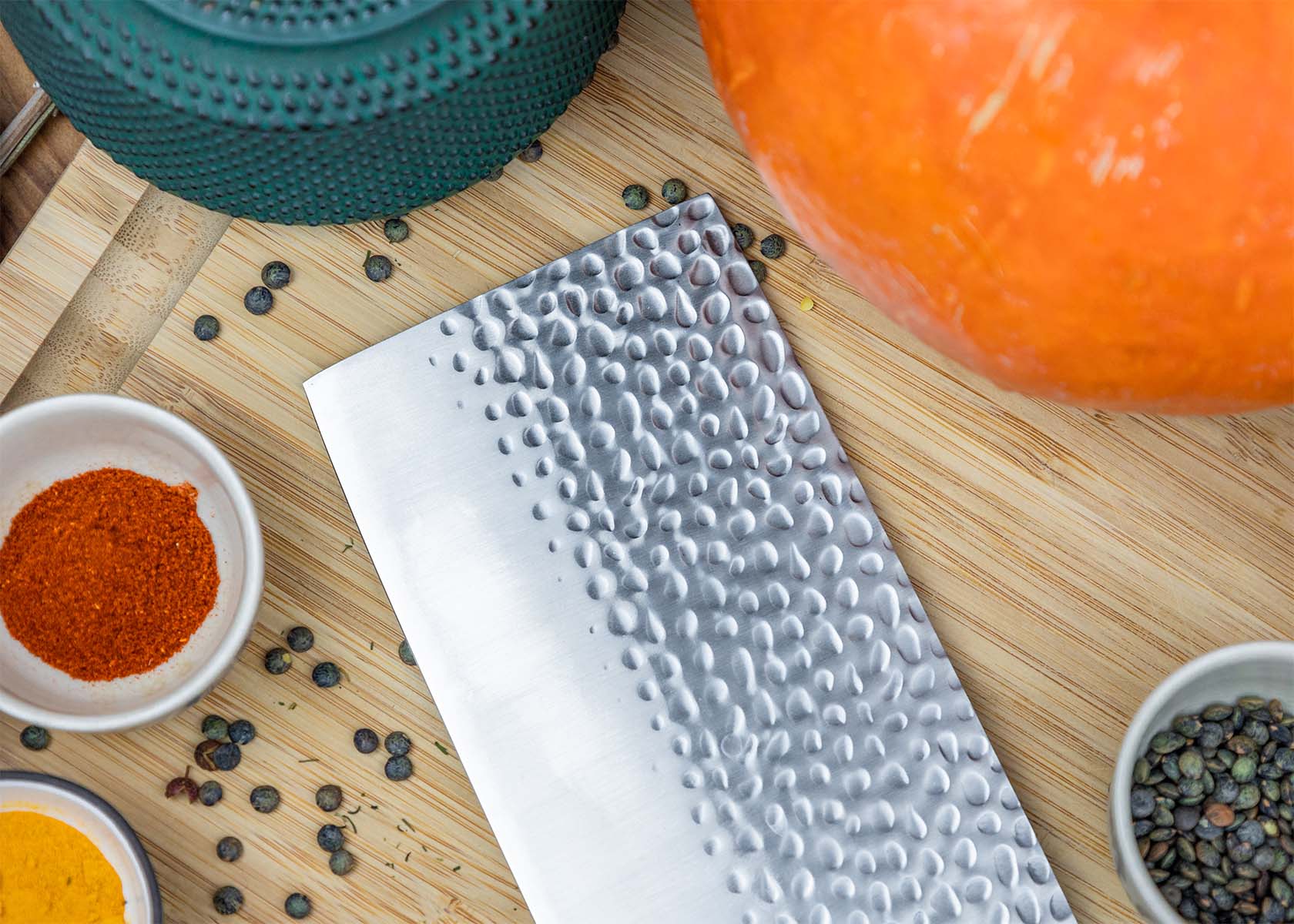 Foruten sin estetiske appell, skaper "Tsuchime" (槌目) (hamret) mønster små luftlommer mellom bladet og maten som kuttes. Denne forfedres japanske metoden reduserer luftmotstanden, og forhindrer dermed at mat fester seg til bladet.