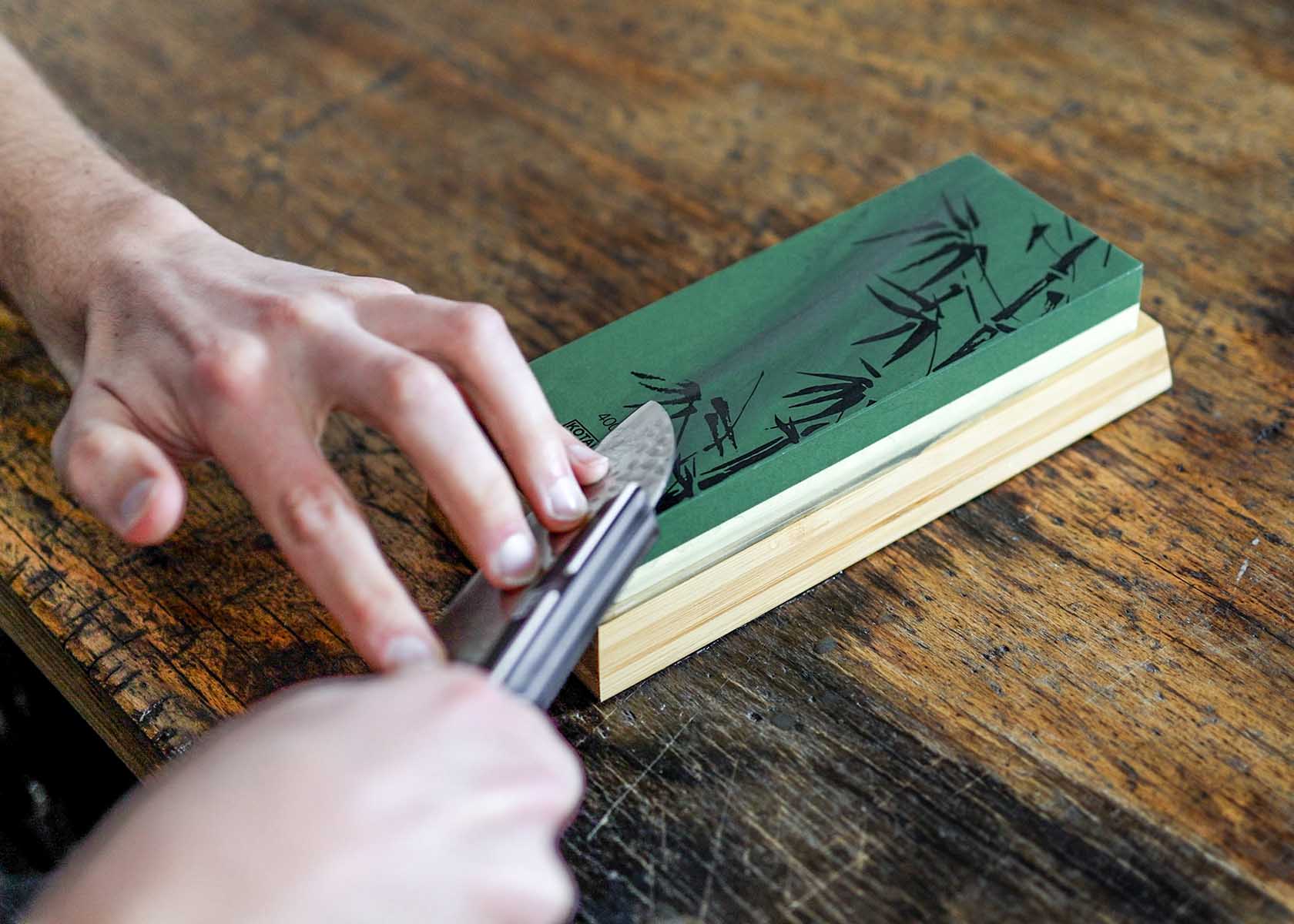 Slipt til en dobbel skråsliping som gir eggen/knivbladet en optimal vinkel på 15 ̊ per side (mot 20-25 ̊ for de fleste vestlige kniver), balanserer Kotai-knivene perfekt ekstrem skarphet og bladets soliditet.