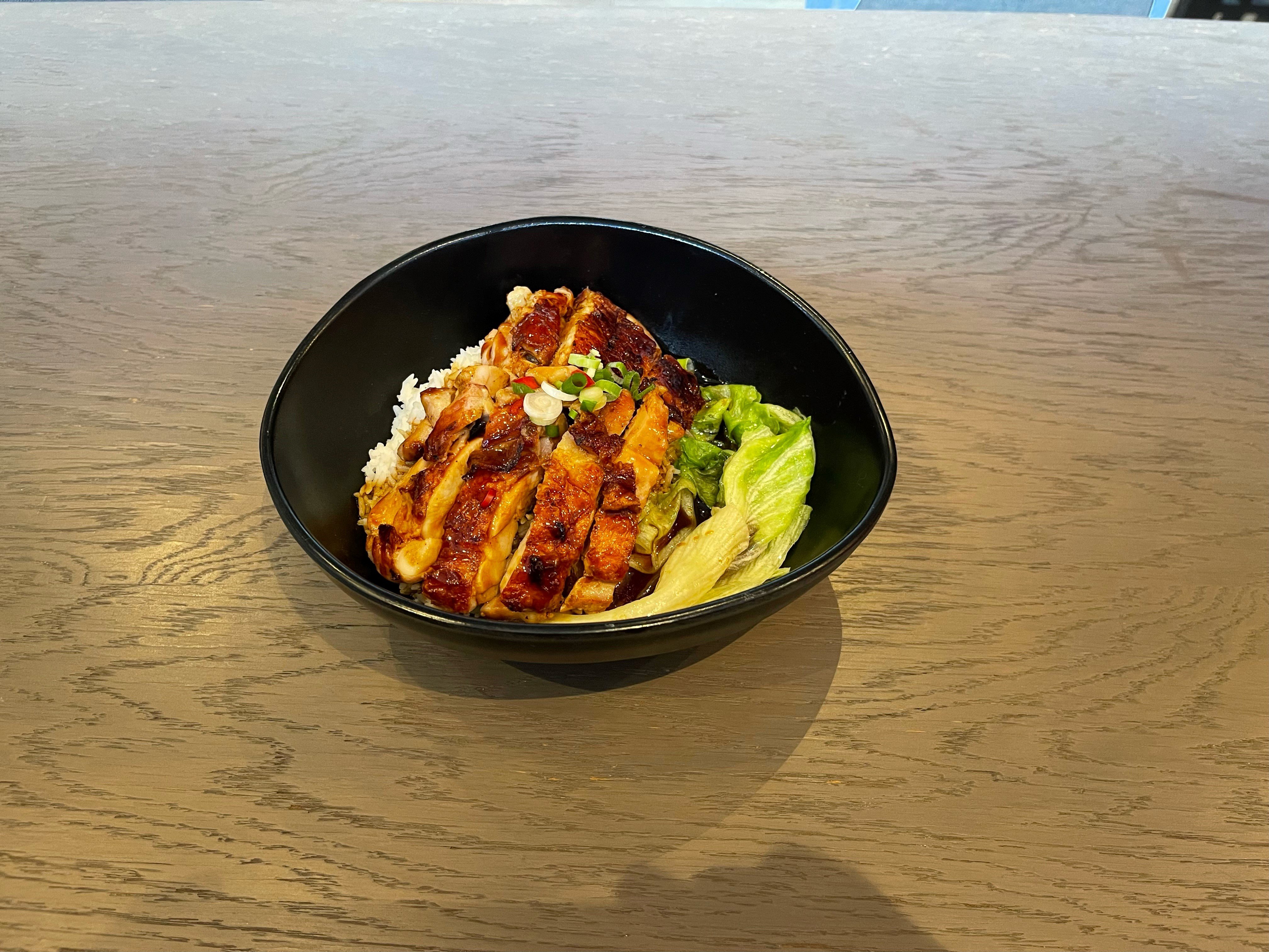 Saftig og mør pannestekt kylling med smakfull hjemmelaget Teriyaki-saus. Serveres med ris.