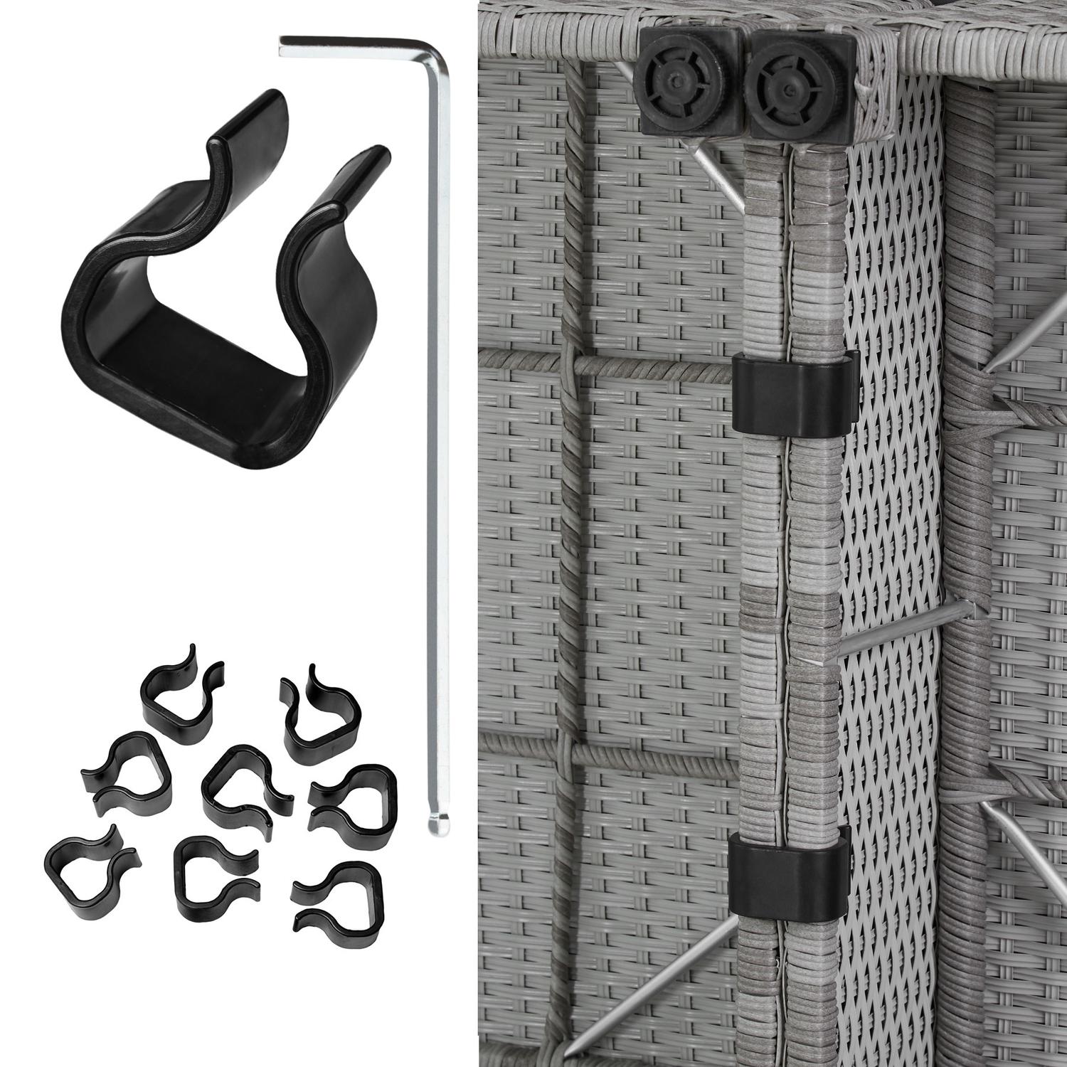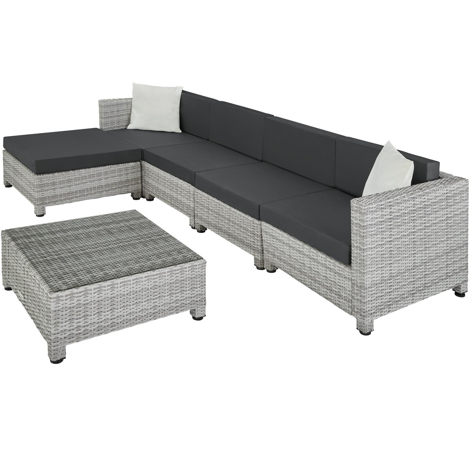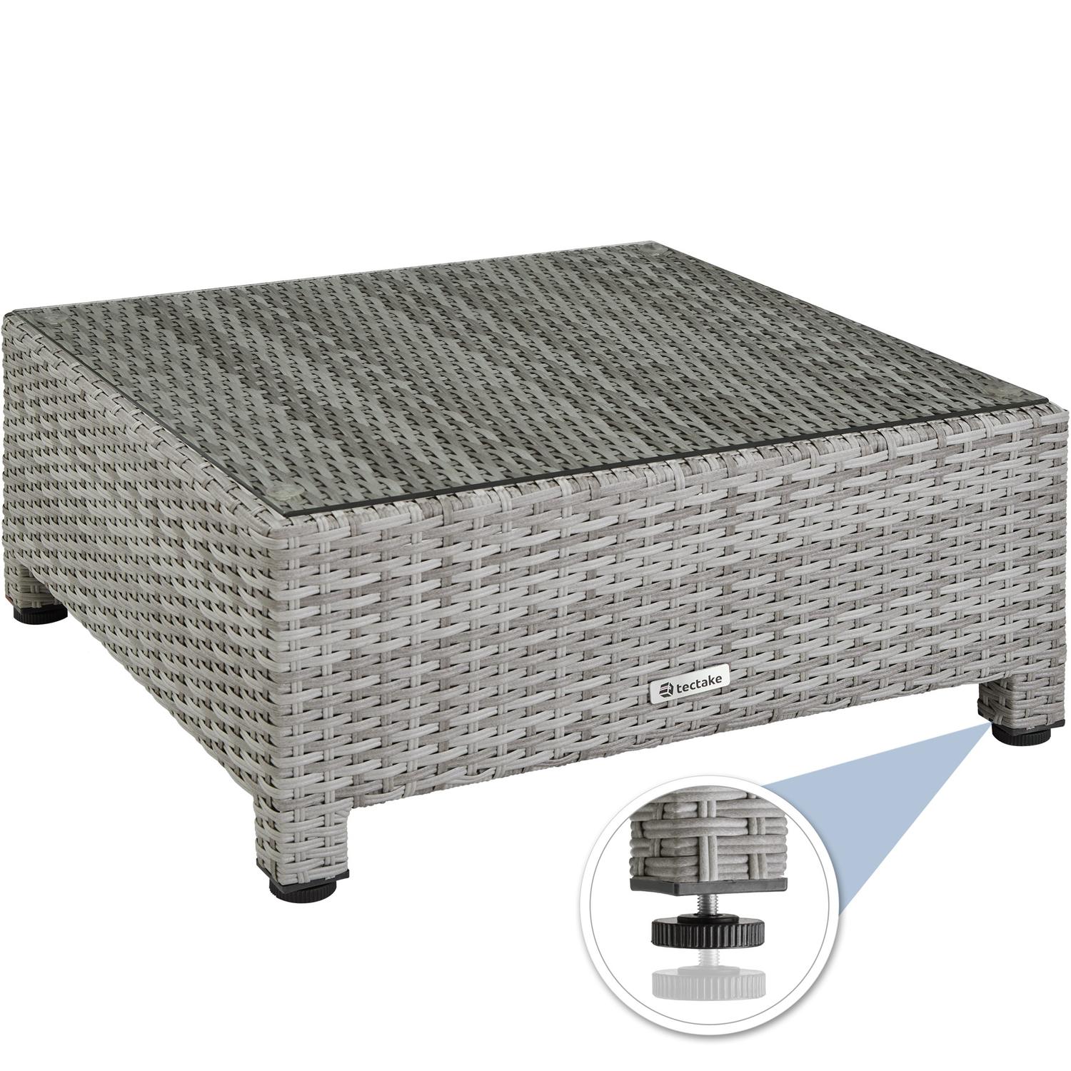 Dette setesettet med hagemøbler i rotting bestående av bord, sofa og lenestol er laget av aluminium og dekket med polyrotting. Dette resulterer i lav vekt, uten at det går på bekostning av stabiliteten. Bordflaten laget av glass ser ekstremt stilig ut og er enkel å rengjøre. De svært komfortable sitteputene laget av polyester er perfekt fargekoordinert med det sorte rottingsettet og har en glidelås på baksiden som gjør det enkelt å rengjøre. For å beskytte polstringen mot fuktighet og smuss, er overflaten impregnert. Gjennom de ulike enkeltelementene kan settet ordnes etter dine ønsker. Bestill dette vakre salonghagemøbelsettet fra Tectake og forsterk din utendørs hage eller uteplass.