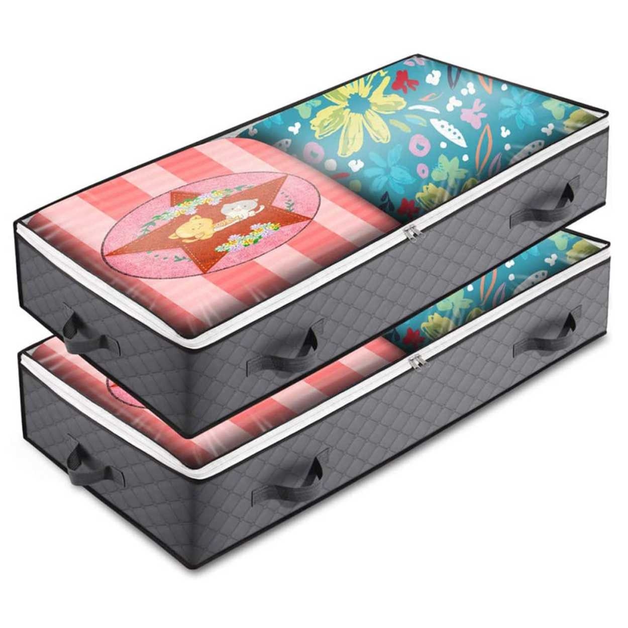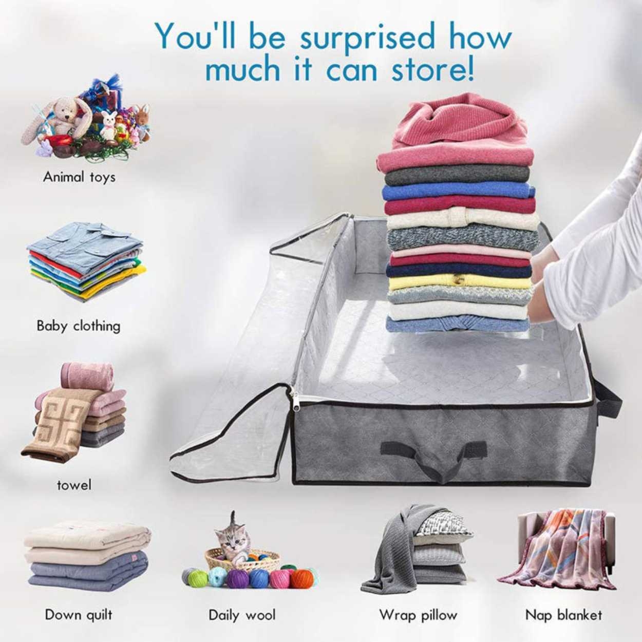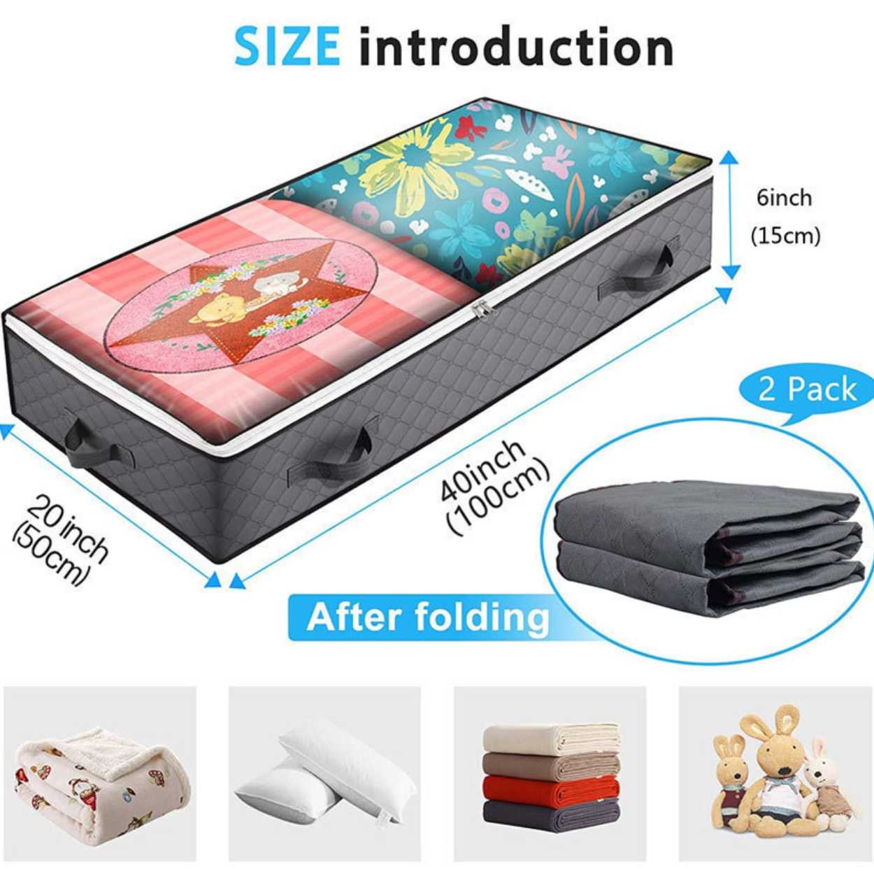 - Utrolig romslig – 50x100x18cm størrelse som gjør at de holder utrolig mye samtidig som de passer under de fleste senger.