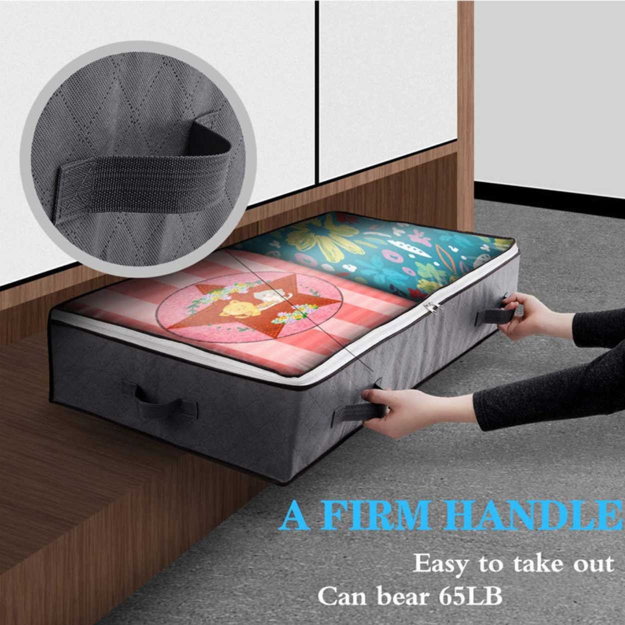 - Fire praktiske håndtak gjør det enkelt å trekke ut og skyve inn under sengen.