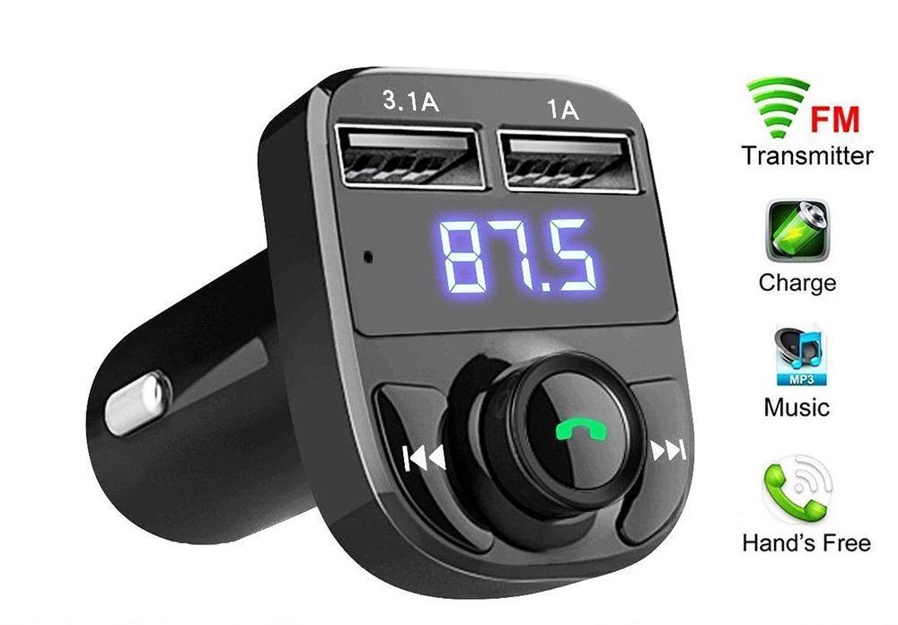 FM-sender med Bluetooth for overføring av musikk og handsfree