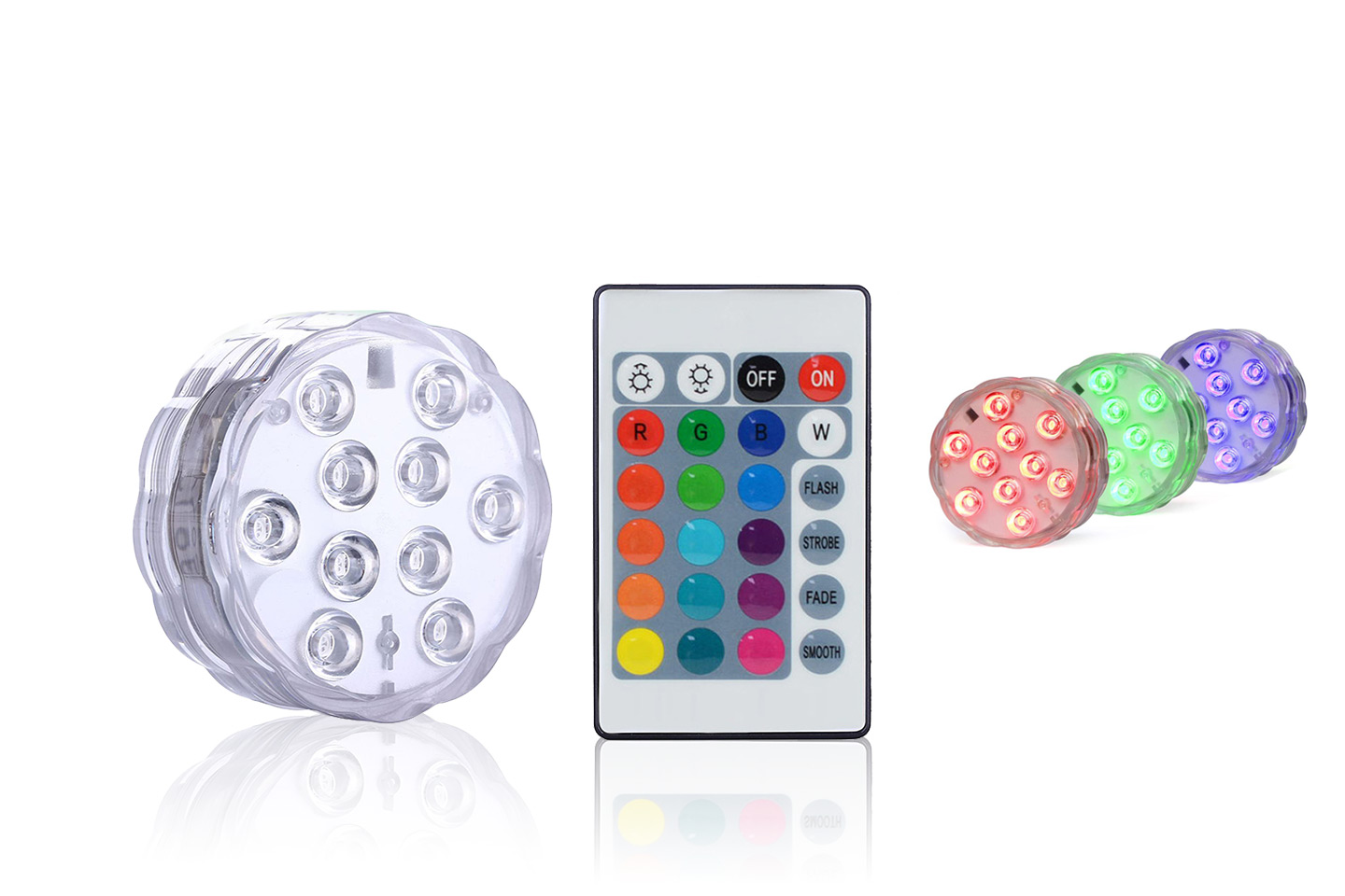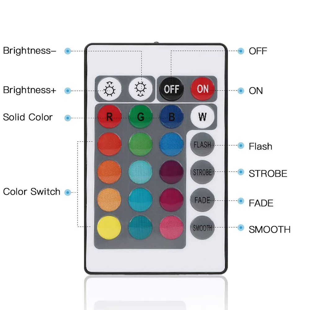Vanntett lys som kan lyse i 16 forskjellige farger. Fjernkontrollen lar deg endre fargen på lyset og veksle mellom forskjellige lysmoduser, blits, strobe, falme og smooth. Lampen har 16 farger som du enkelt skifter mellom. Det er perfekt for bassenget, akvariet, blomstervaser eller et vanlig drikkeglass for et koselig stemningslys.