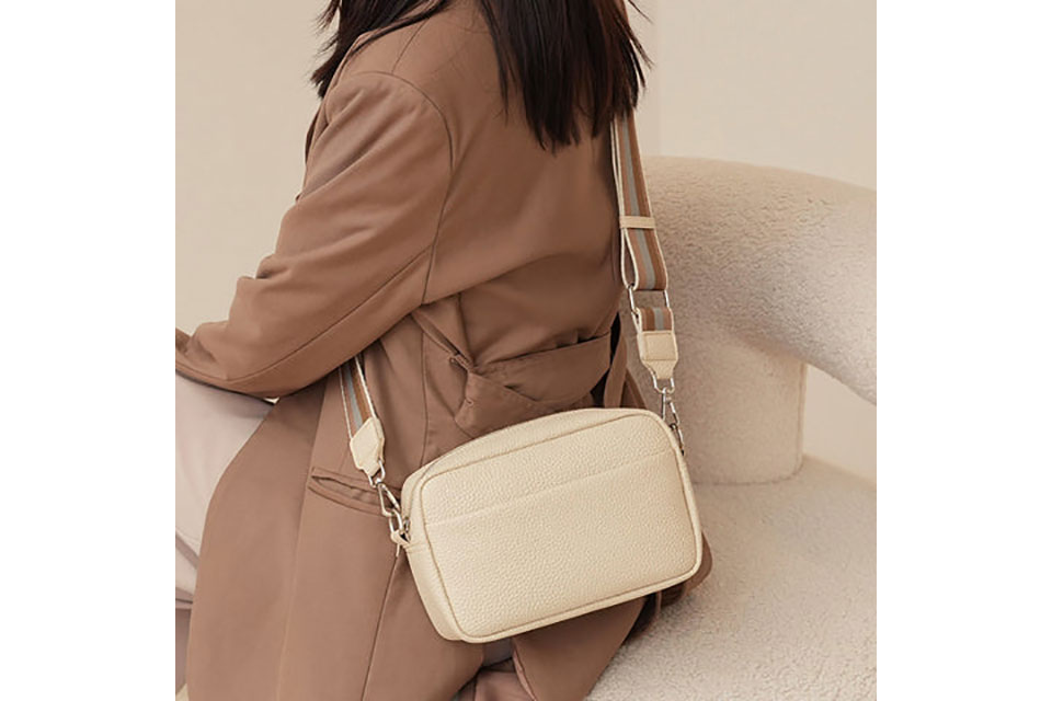 Stilig håndveske som kan brukes som crossbody eller skulderveske. Velg mellom hvit, beige eller sort.