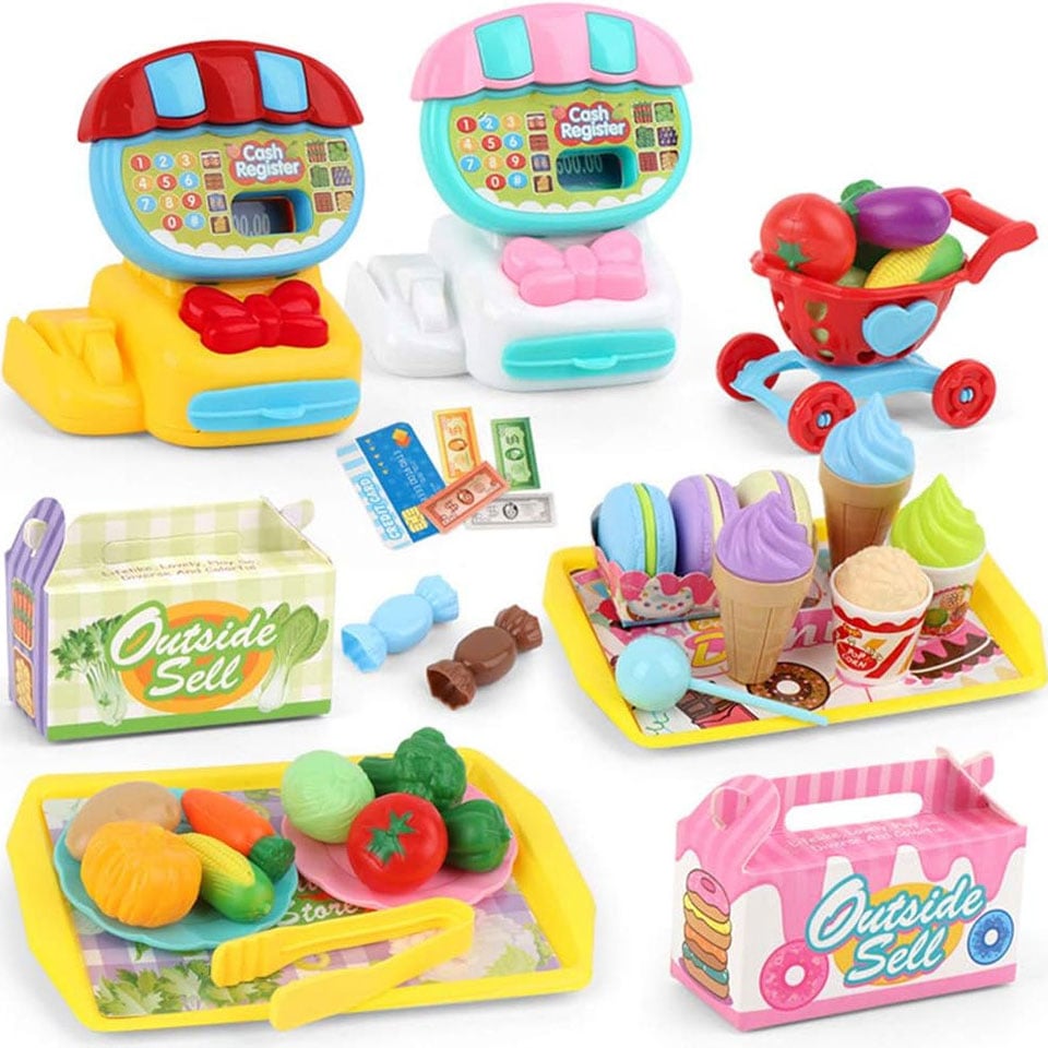 Gi barnet ditt muligheten til å lage sin egen butikk med kassaapparat og selge grønnsaker, is eller smultringer med disse morsomme lekene, og utforsk en fantasifull verden full av læring og moro. Velg mellom 2 ulike butikker.