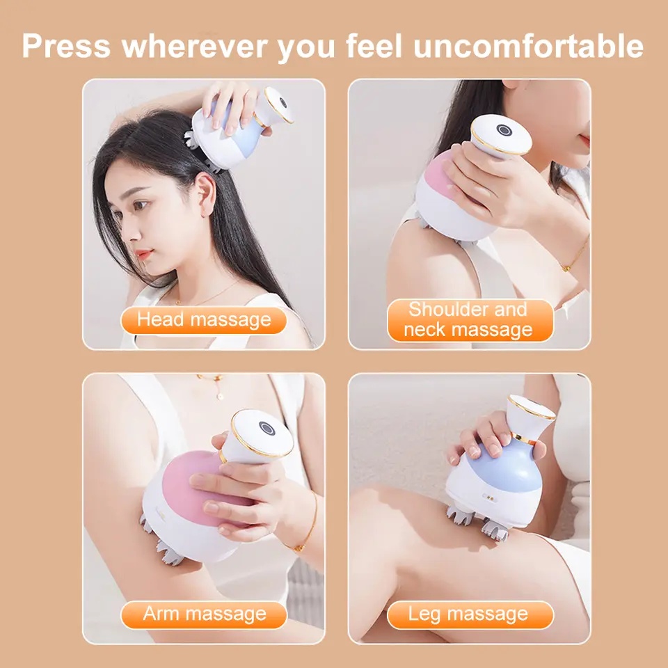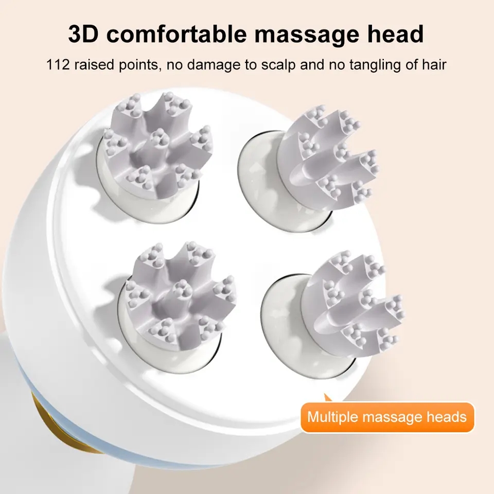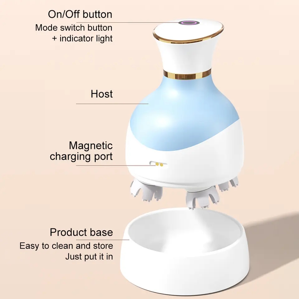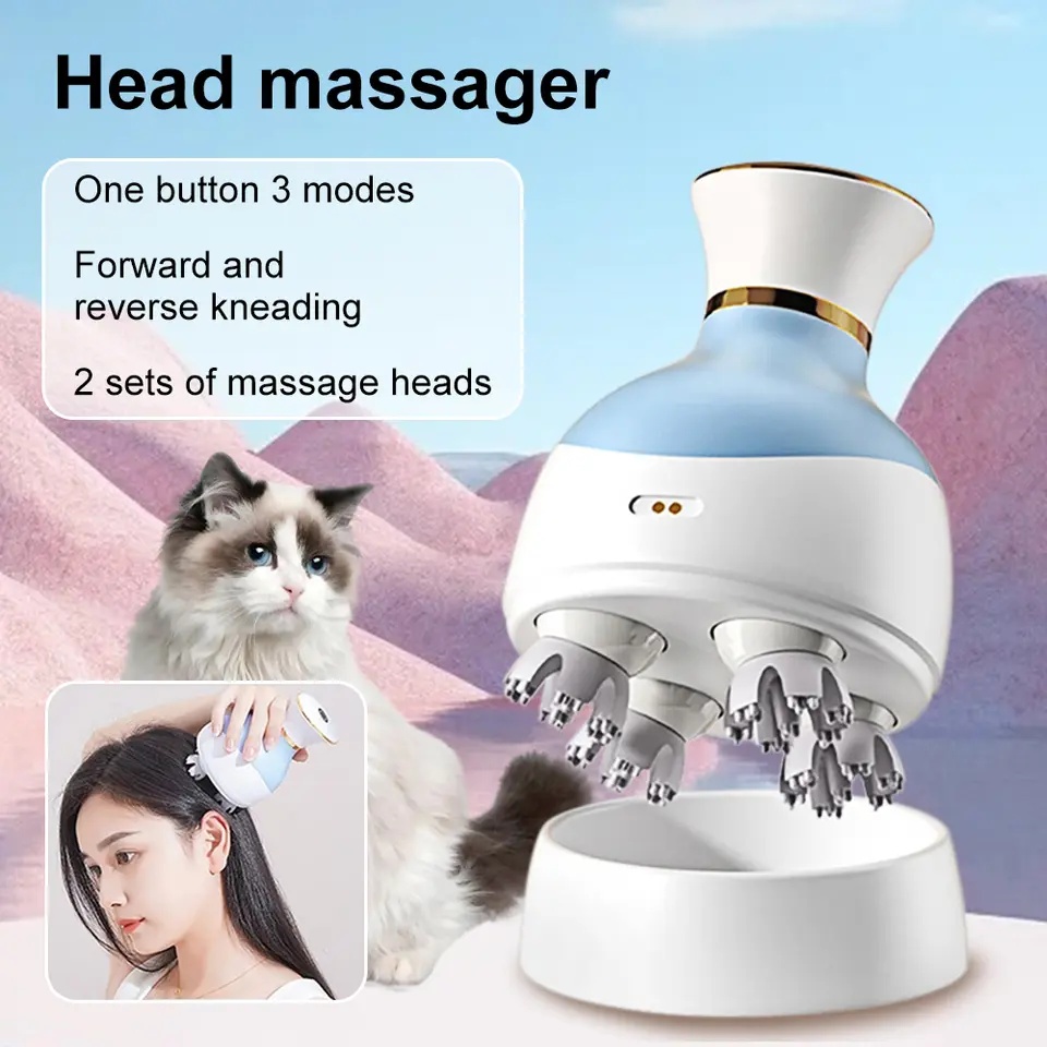 Elektrisk hodemassasjer – trådløs, USB-lading, 4 utskiftbare massasjehoder