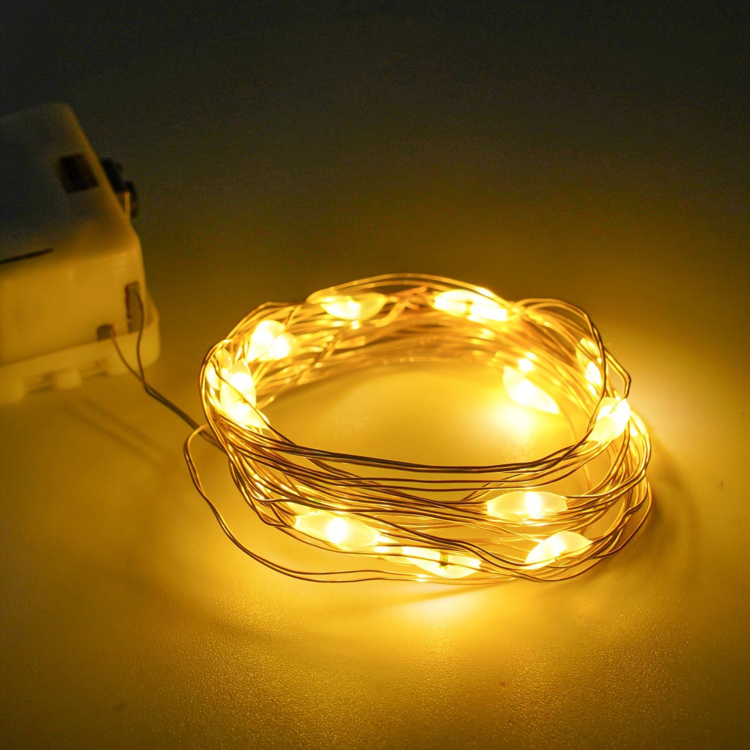 Gi hjemmet eller festen en koselig følelse med disse fleksible Mini LED Lyslenkene! De små lampene i varm hvit tone sprer et innbydende lys som passer like godt på hyllen og i vinduet som på middagsbordet eller til dekorasjon ved bryllup og fester. Siden lenkene drives av batteri, kan du plassere dem akkurat der du vil uten å tenke på ledninger – superpraktisk og enkelt!