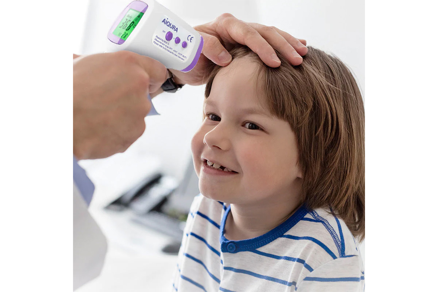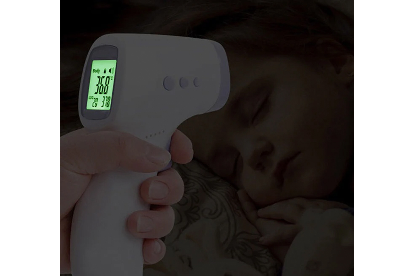 Infrarødt digital pannetermometer som måler raskt temperaturen fra panne/tinning uten berøring.