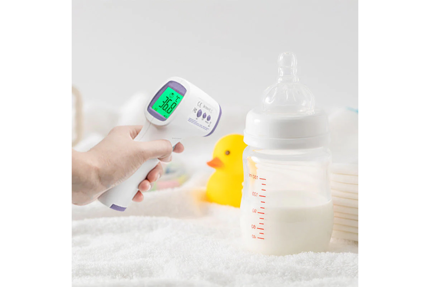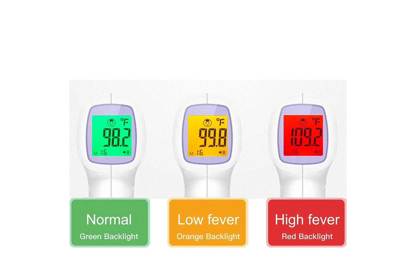 - 3-farget display: grønn (kroppstemperatur 34,0-37,3 °C); gul (kroppstemperatur 37,4-38°C), rød (kroppstemperatur 38,1-42,6°C)