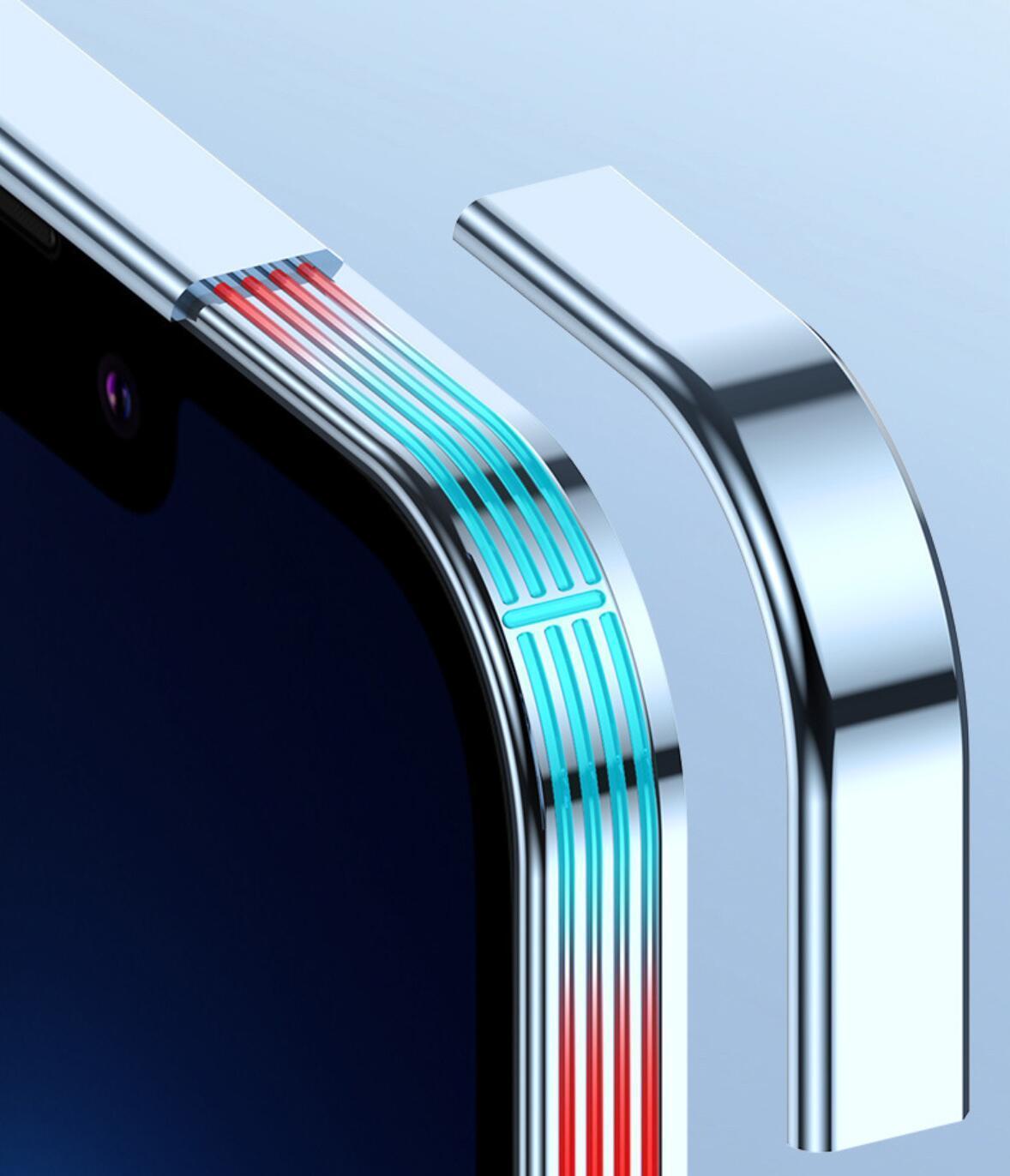 - - Forhøyede kanter på skjermen og kameraet for å beskytte mot støt og riper