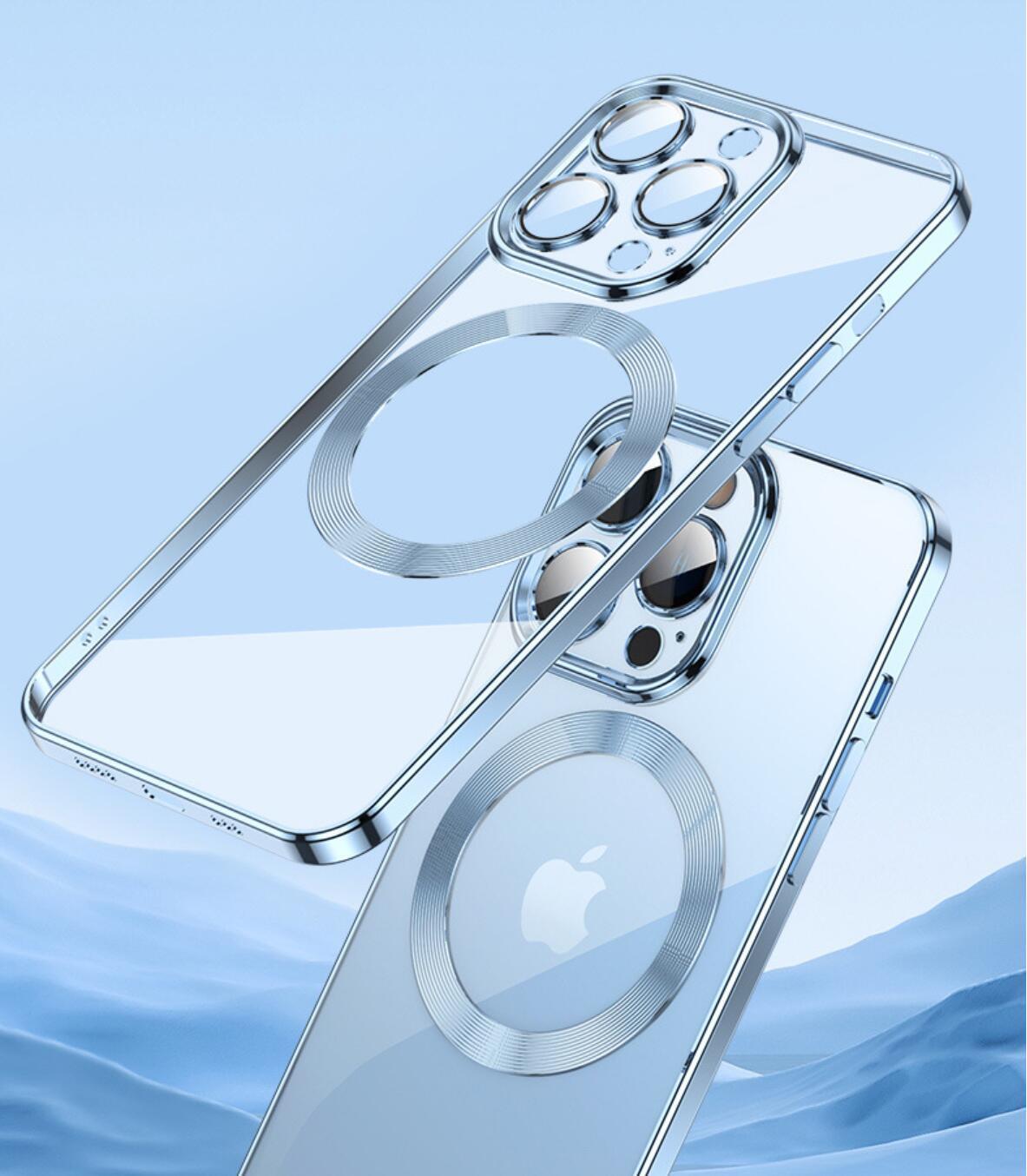 MagSafe-kompatibelt telefondeksel for alle iPhone 11, 12, 13 og nyeste 14-modeller. Dekselet støtter alt MagSafe-kompatibelt tilbehør. Materialet er galvanisert med laser, som gir en eksklusiv finish.