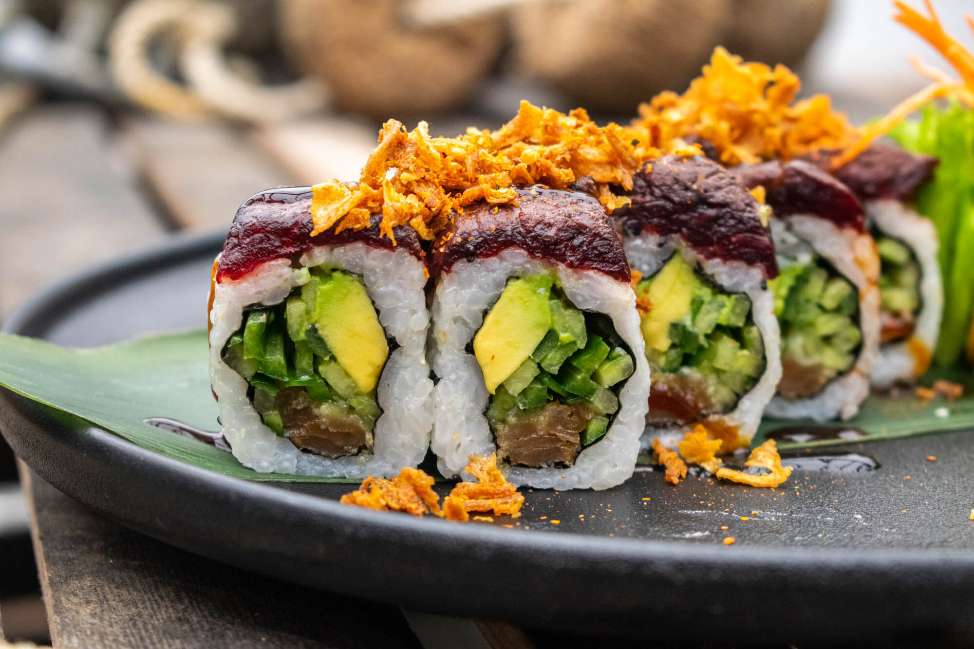 Green Dragon Roll (8 biter), Red Dragon Roll (8 biter).