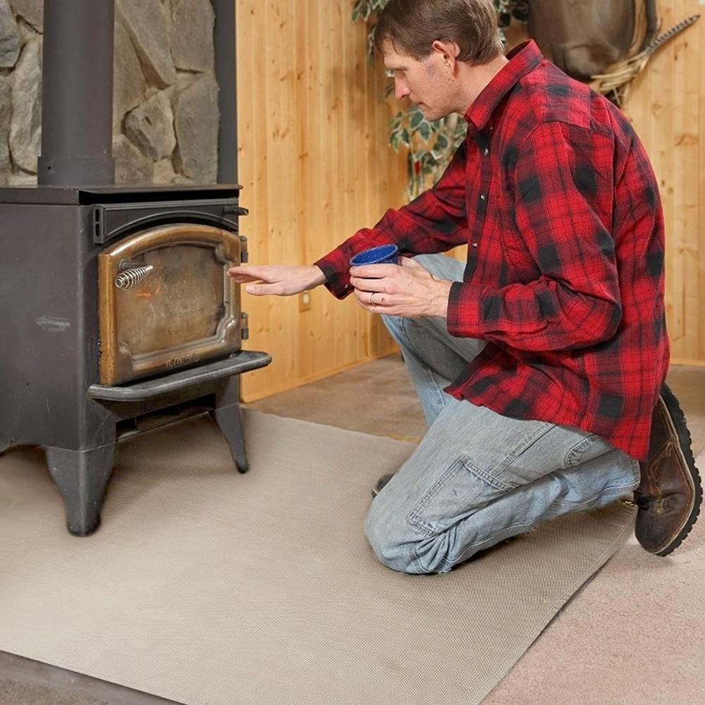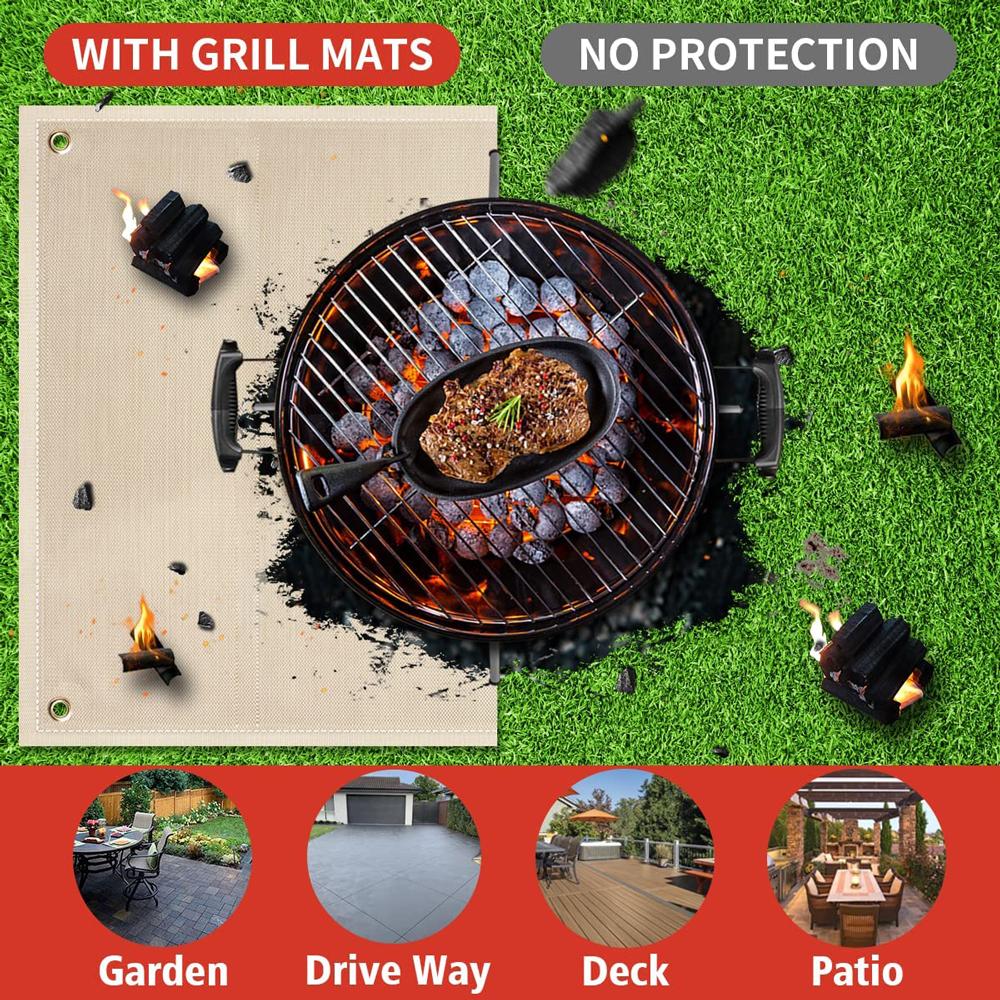 Brannsikker glassfiberduk som beskytter overflaten fra å bli skadet av varme. Legg den under grillen for å beskytte uteplassen eller plenen. Plasser den foran en peis for å beskytte gulvet mot