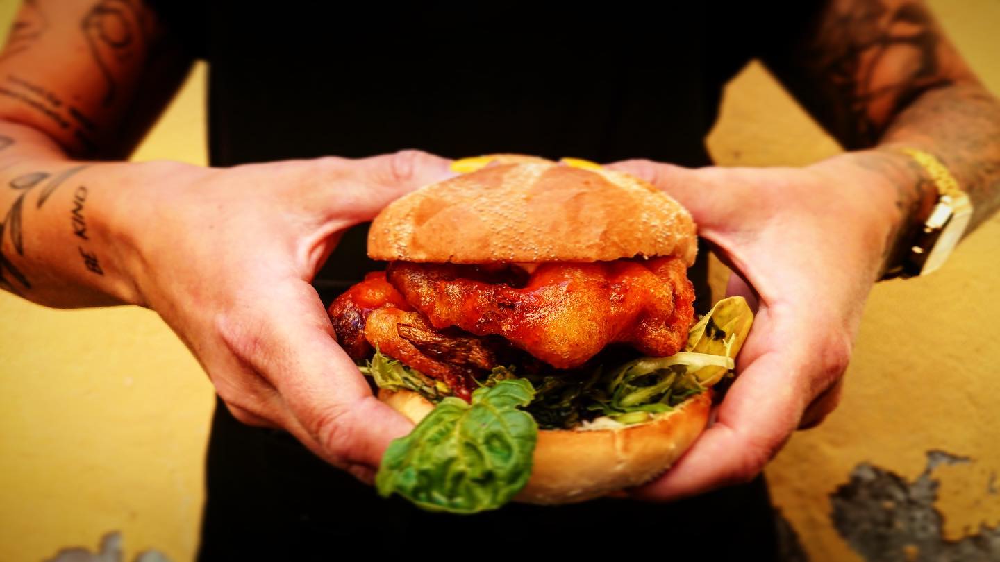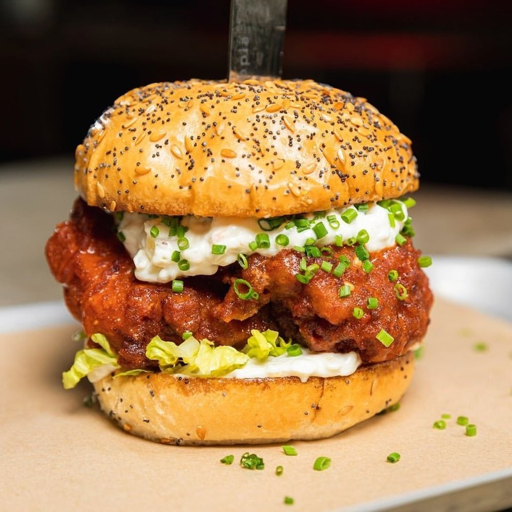 Fried chicken, guacamole, coriander, pickled red onions & chipotle mayo on a brioche bun.