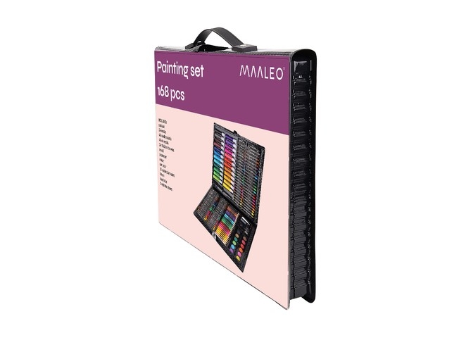 Oppdag det perfekte malesettet for både barn og voksne! Vårt omfattende malingssett i en stilig svart bag inneholder alt du trenger for å lage dine kunstverk. Med totalt 168 stykker er det ingen grenser for kreativiteten din.