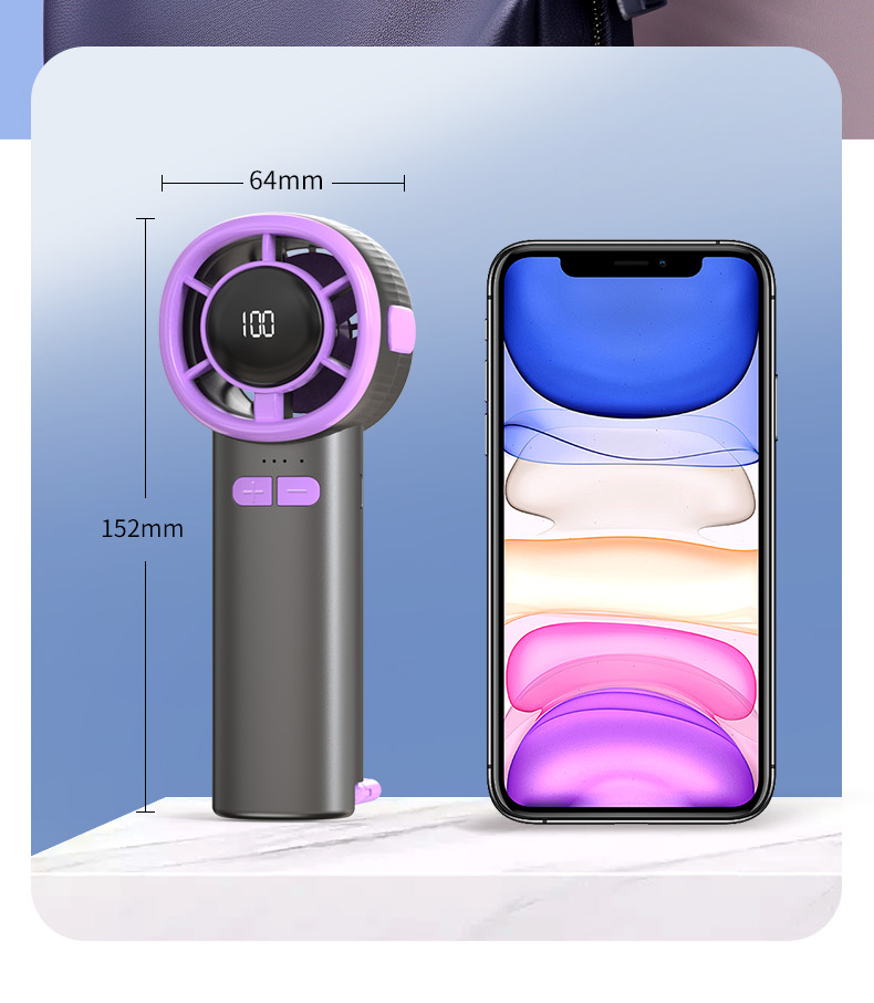 Denne bærbare håndholdte viften kombinerer smart design med høy funksjonalitet. Med 100 justerbare hastigheter, et digitalt display og lang batterilevetid er den perfekt for både hverdag og eventyr. Enten du reiser, trener utendørs eller bare trenger en kjølig bris ved skrivebordet, er denne viften klar til å levere.