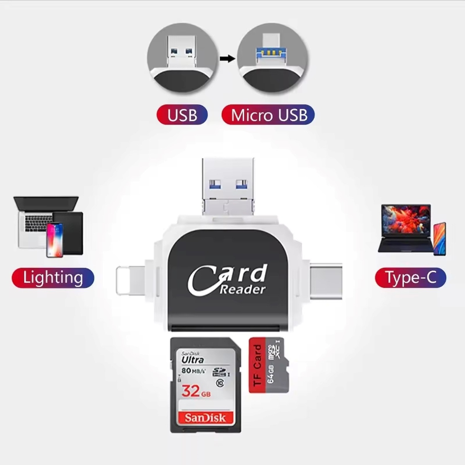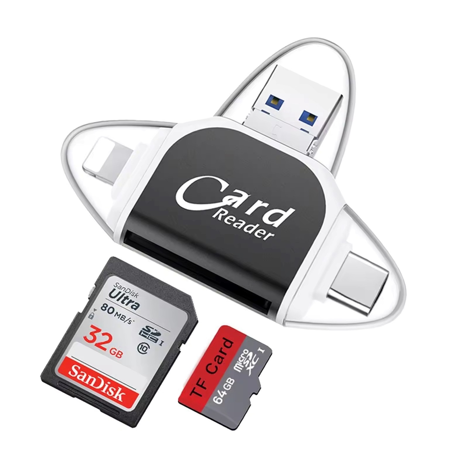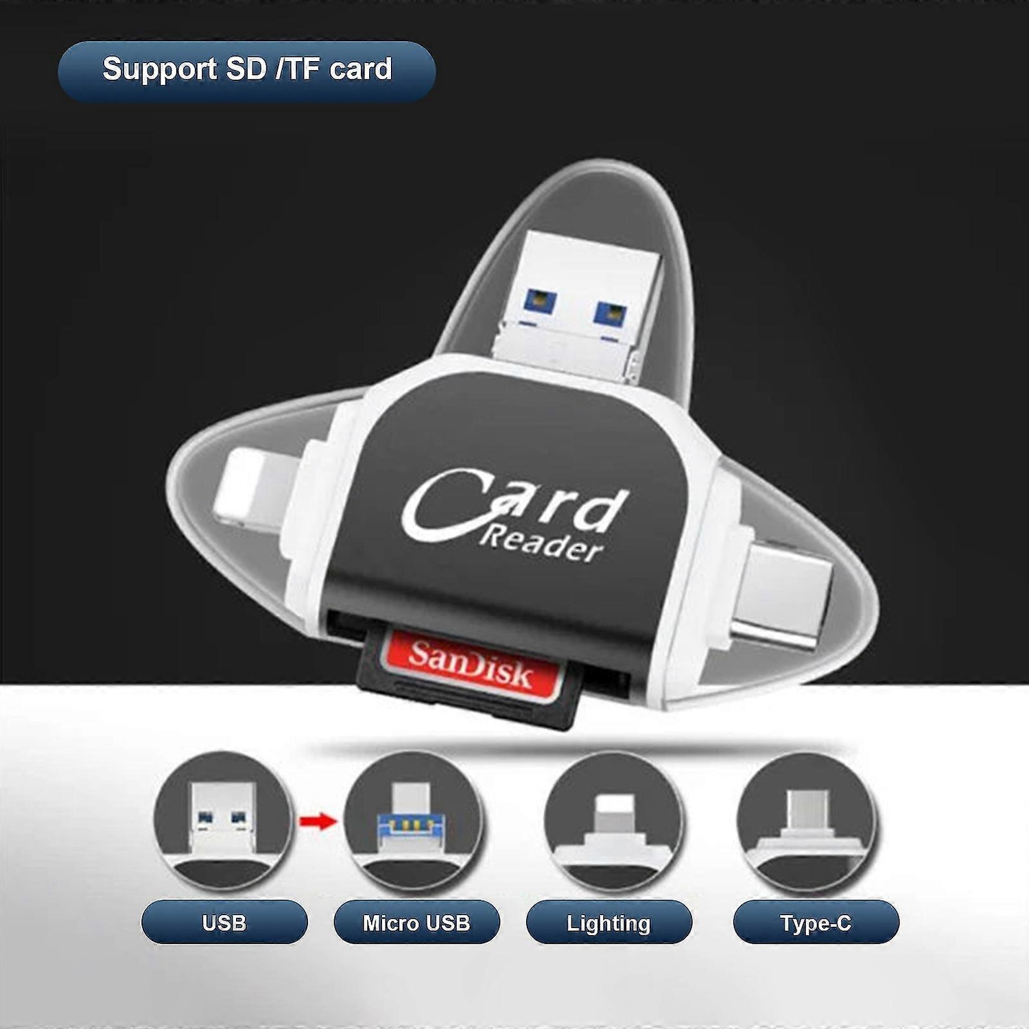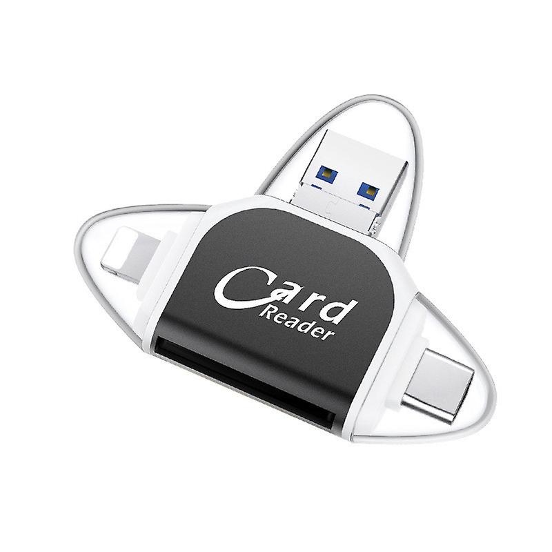 Denne allsidige kortleseren er designet for å passe alle enhetene dine – fra iPad og iPhone til Android, MacOS og Windows. Med fire forskjellige USB-kontakter (USB type-A, USB type-C, Mini-USB og Lightning) kan du enkelt og raskt overføre filene dine uavhengig av hvilken enhet du bruker.