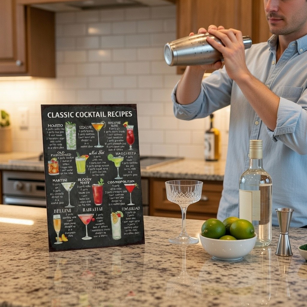 - Bruk: Viser cocktailoppskrifter og fungerer som dekorativ drinkmeny