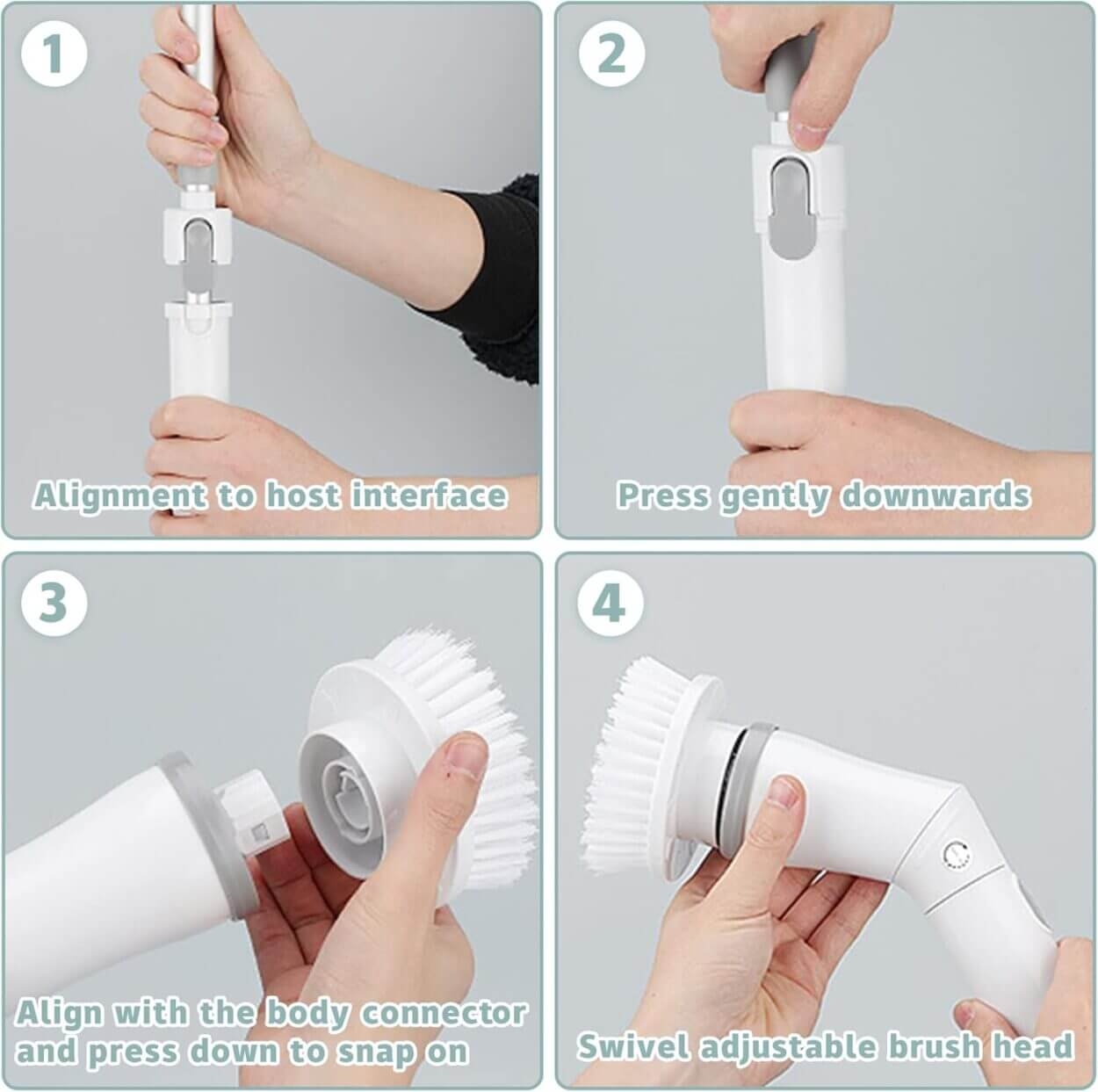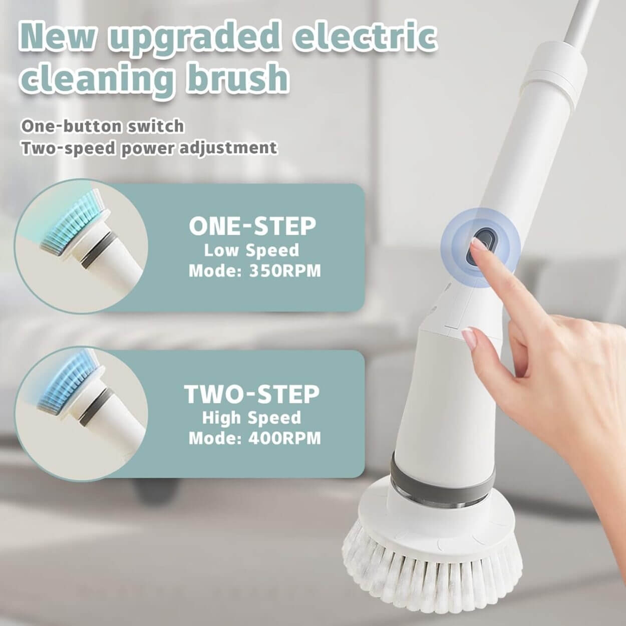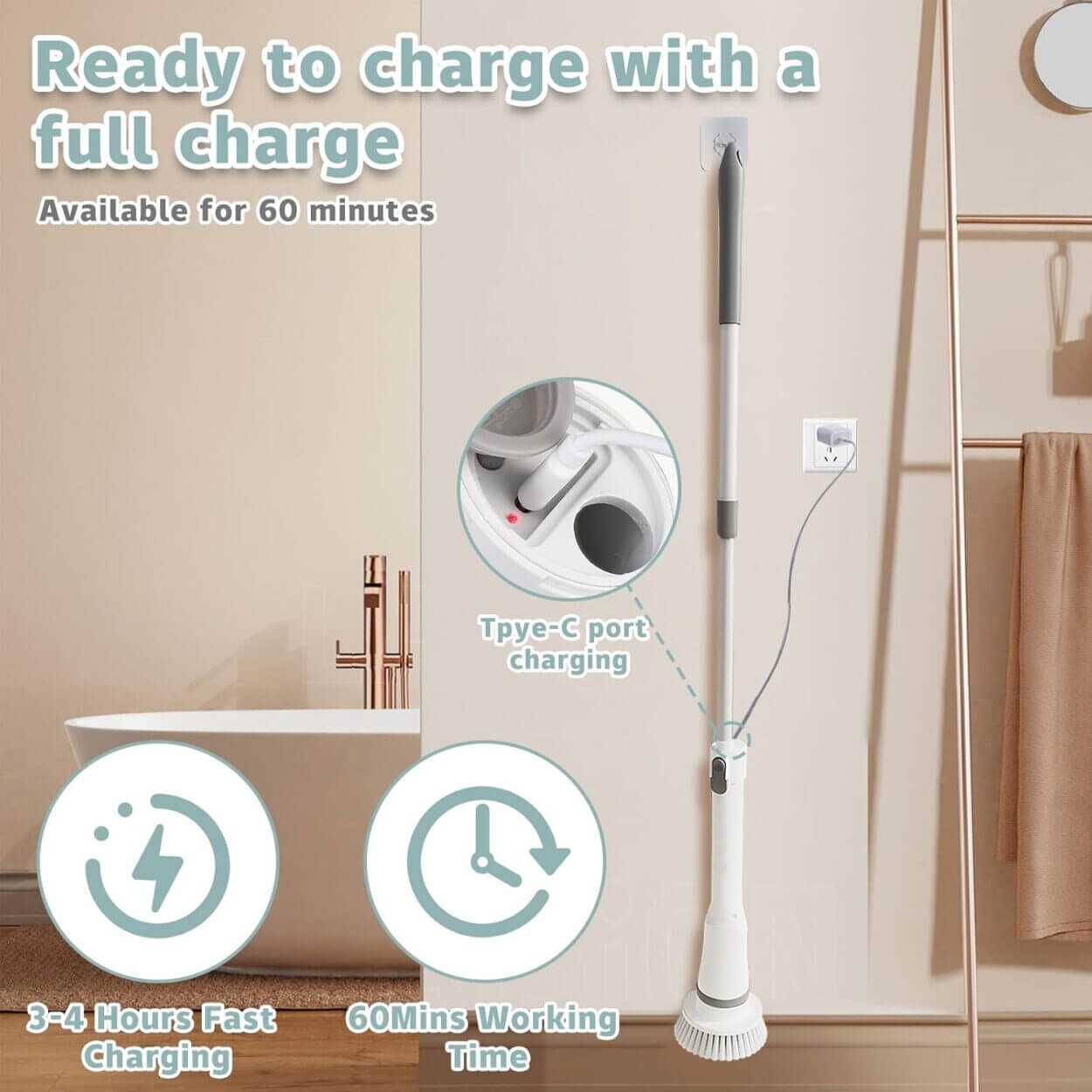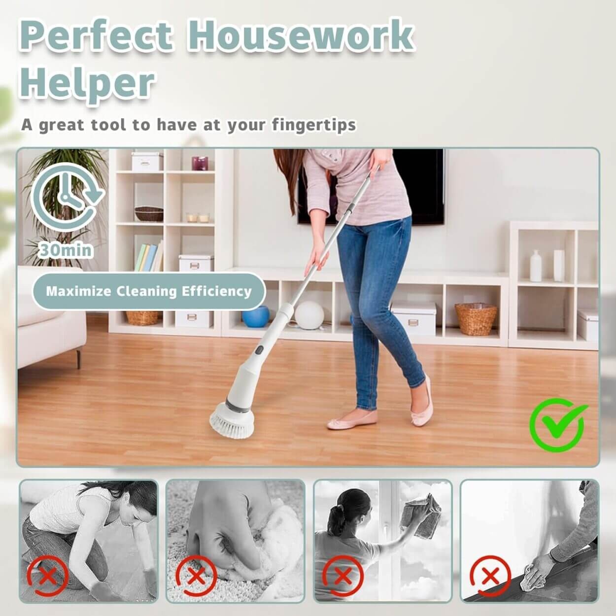Vår elektriske rengjøringsbørste er superenkel å montere og bruke. Du trenger ikke å bøye deg eller anstrenge deg, noe som gjør rengjøringen mindre slitsom. Teknologi gjør livet mer behagelig og rengjøring morsommere. Begynn å nyte husarbeid med familien din!