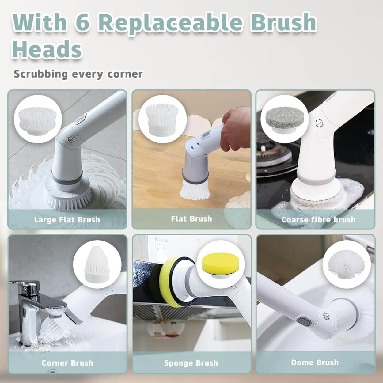 Vår elektriske skrubber kommer med 6 utskiftbare børstehoder, perfekt for enhver overflate du kan tenke deg. Fra badekar og servanter til kjøkkenkomfyrer og bilhjul – du sparer tid og får et flott resultat hver gang. Hvorfor kaste bort tid på å bytte mellom forskjellige rengjøringsverktøy når du kan ha alt i én enhet?