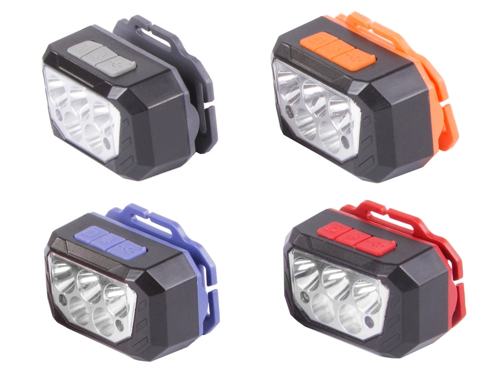 - Oppladbar hodelykt med 3x XHP30 og 6x SMD LED