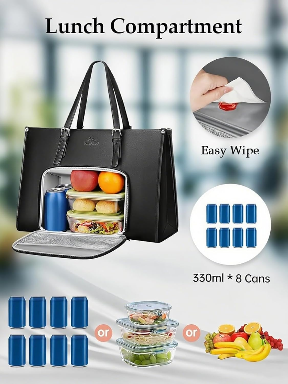 Stil og funksjon i ett! Denne elegante laptop-vesken har plass til PC opptil 15,6" og et eget isolert, lekkasjesikkert rom som holder maten varm i opptil 5 timer eller kald i opptil 6 timer. Laget i slitesterkt, vanntett PU-skinn med flere smarte rom for dokumenter, småting og tilbehør. Perfekt for jobb, studier, reiser og hverdagsbruk.