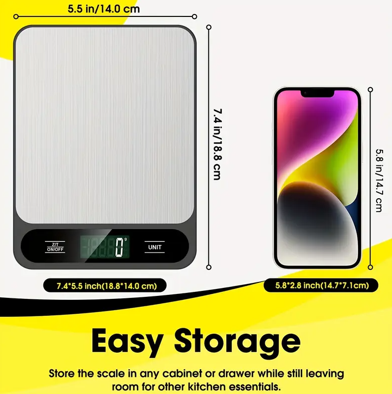 - 6 enheter: g, kg, lb, oz, ml, melk ml
