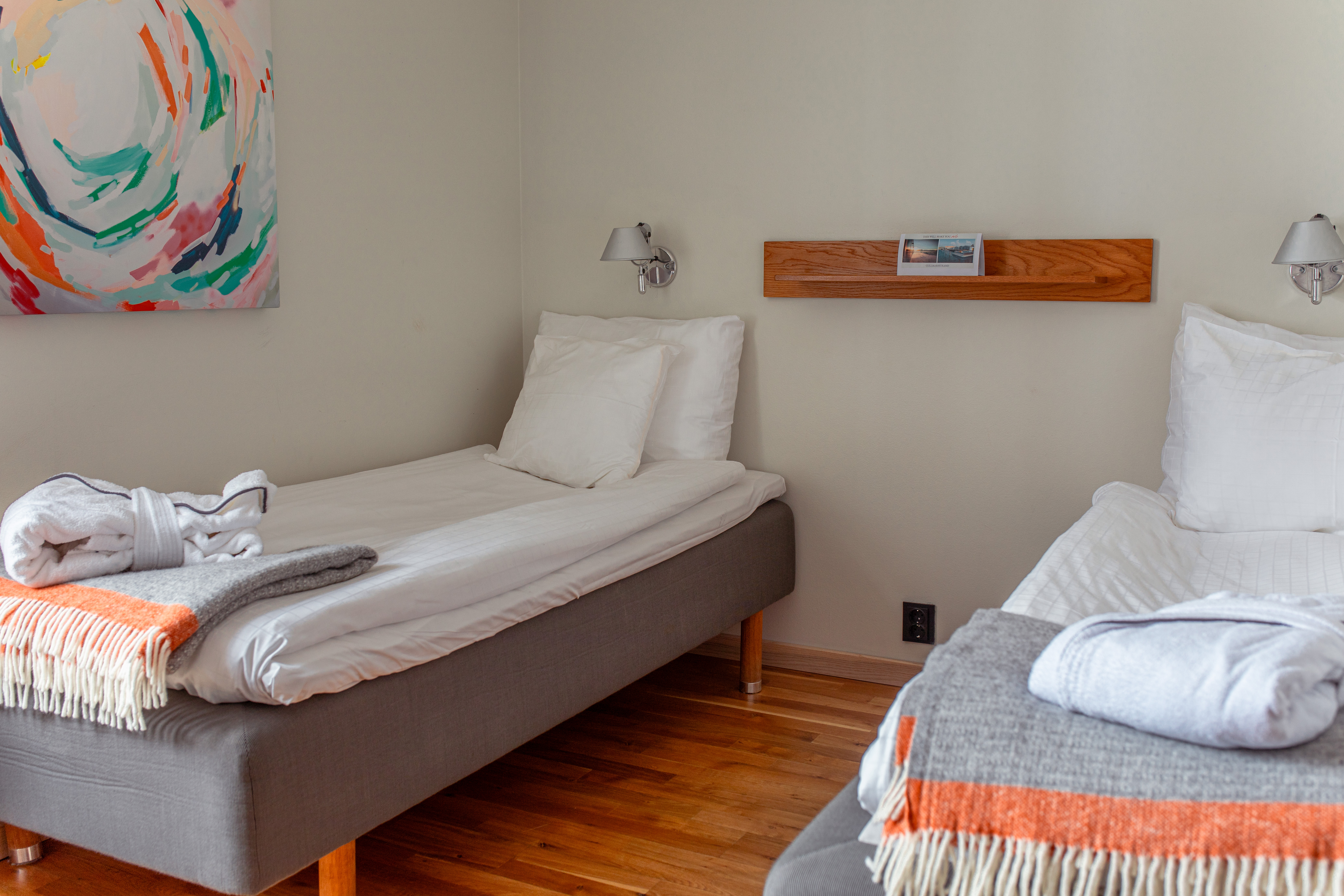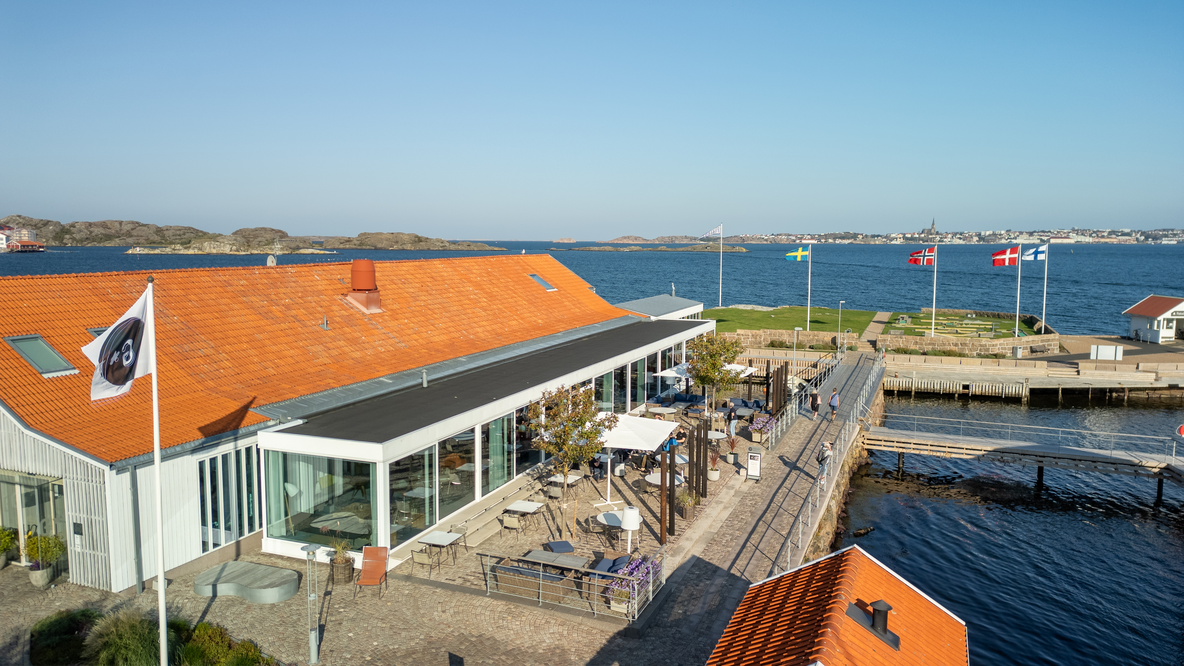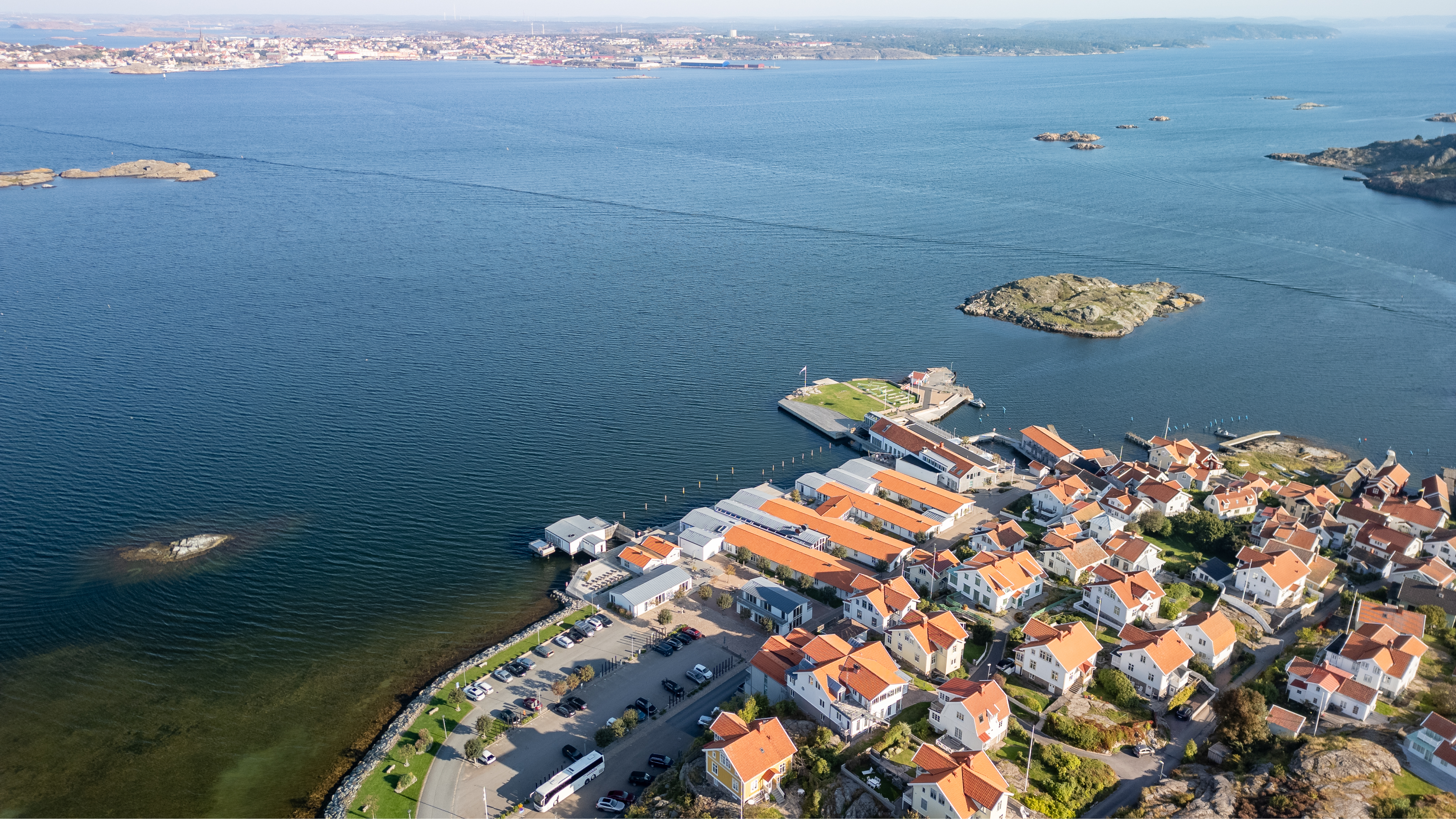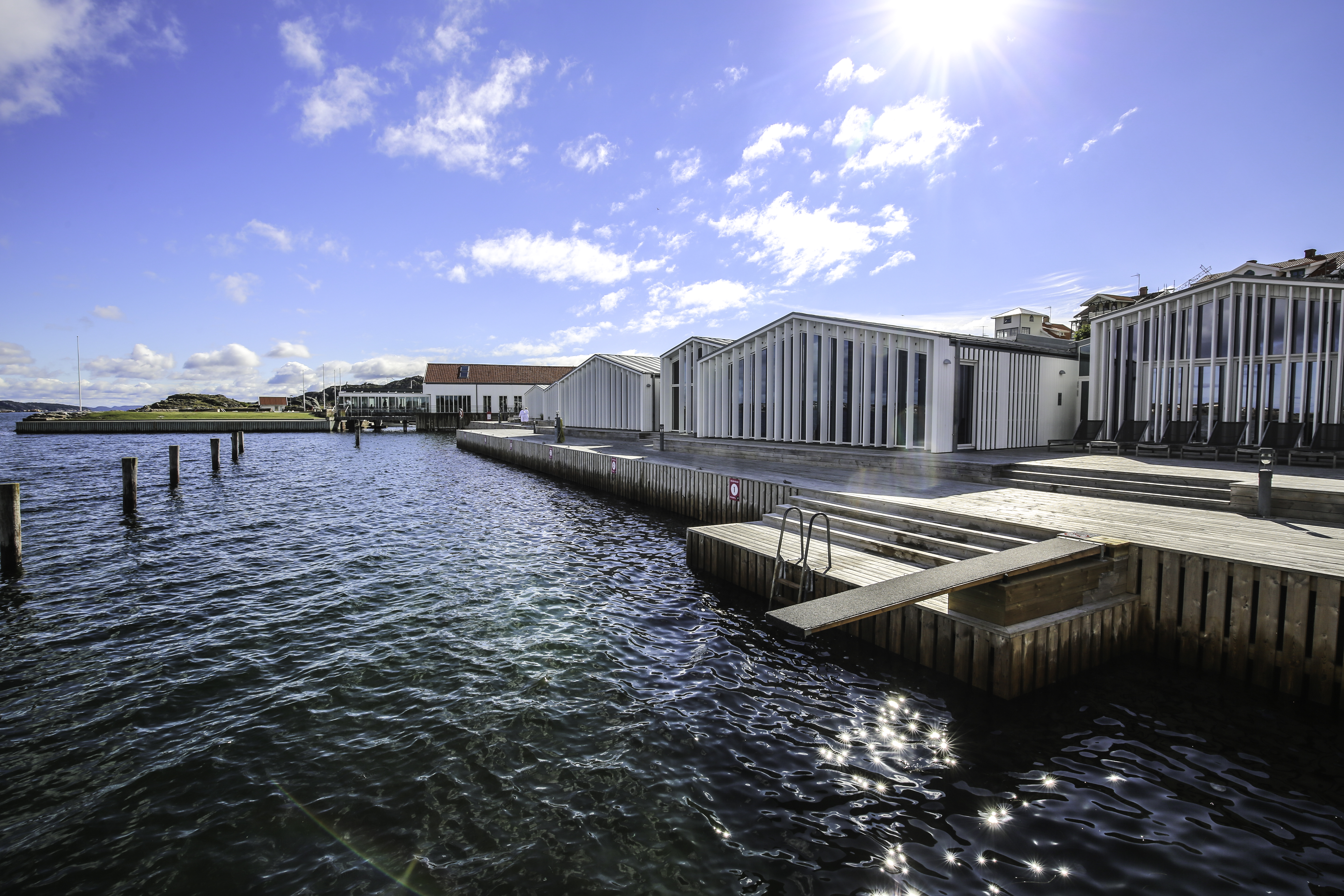 Gullmarsstrand ligger så nært vannet du kan komme, på en langstrakt brygge med utsikt over øyene og buktene i Gullmarsfjorden. Den unike beliggenheten ved sjøen skaper en følelse av absolutt fred og absolutt tilstedeværelse.