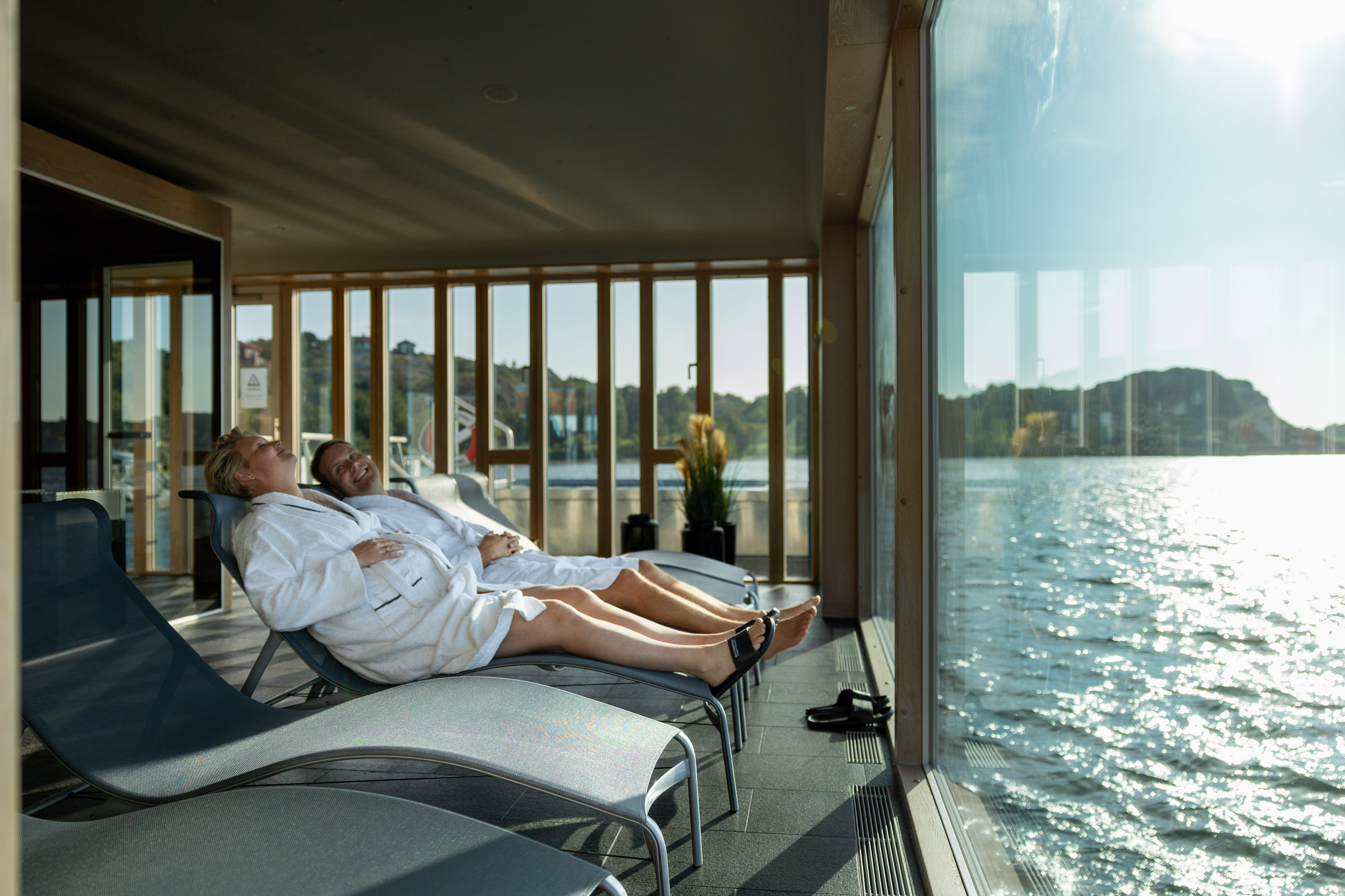 I avslapningsområdet kan du nyte en rolig stund i innendørsbassenget på 38 grader, samt en skikkelig varm og behagelig badstue hvor kun en glassvegg skiller deg fra utsikten over Gullmarsfjorden. Fra avslappingen kan du gå ut på brygga for å ta et sjøbad eller ta en dusj i utendørsdusjen. Utenfor avslappingen på broen har du også tilgang til Infinity-bassenget som holder en temperatur på 38 grader. Ved siden av bassenget er det en trapp ned til sjøen for de som ønsker å ta en dukkert i havet. Vær oppmerksom på at denne delen deles med andre gjester. Egen mat og drikke er ikke tillatt. Det er 15-årsgrense i Relax of the Senses. Ikke glem badetøyet! Pris 255 kr/p, forhåndsbestilling gjelder, tidsbehov 2 timer.