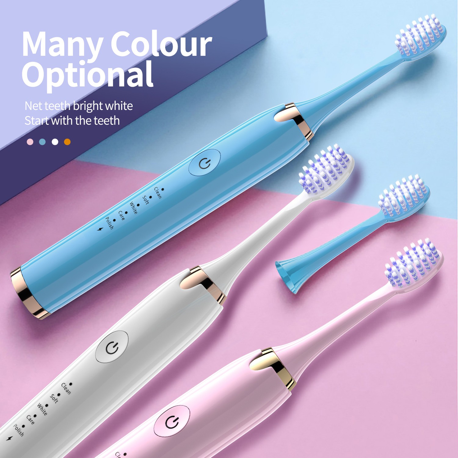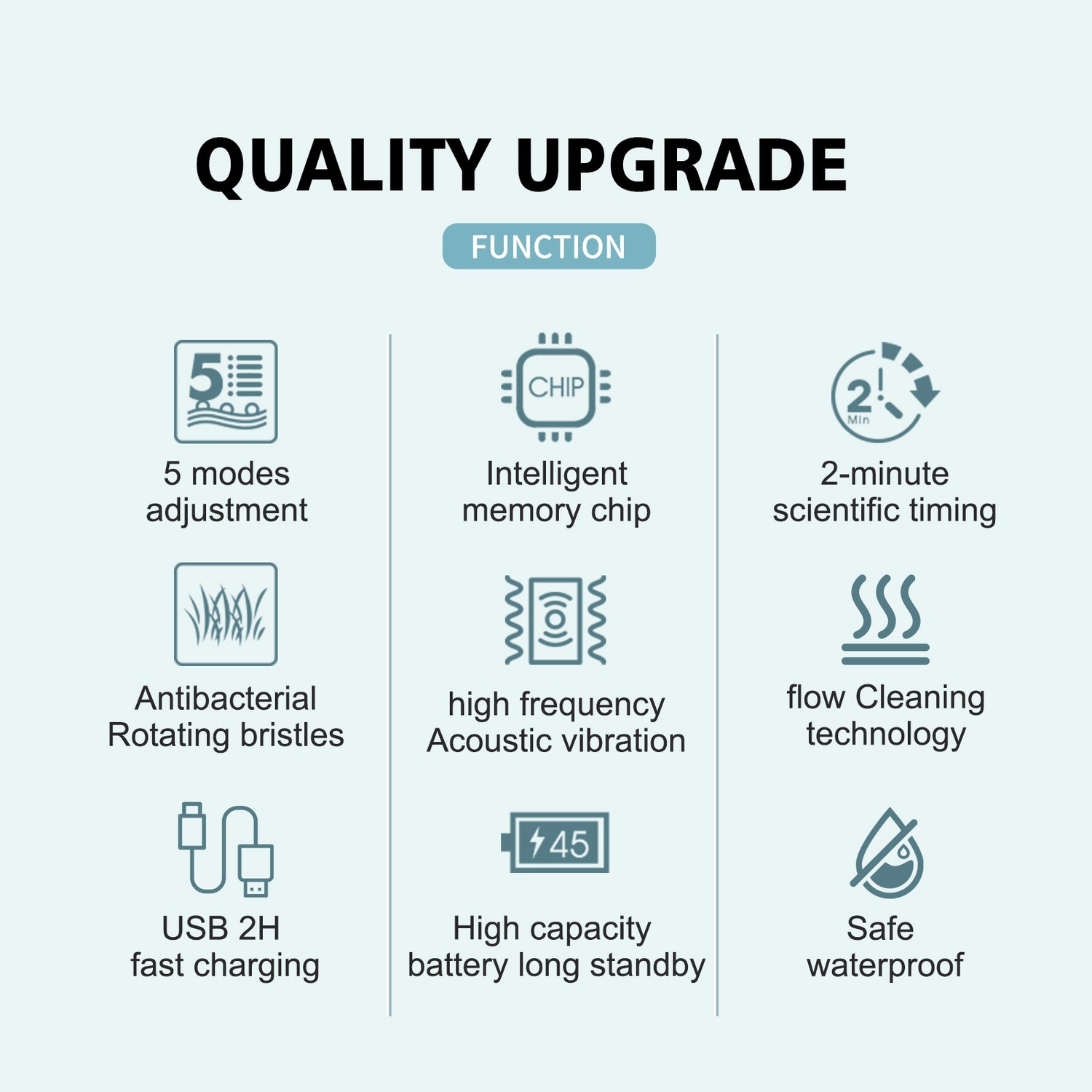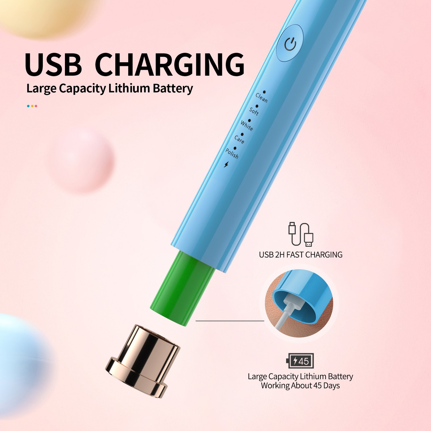 Kraftig elektrisk tannbørste med 5 moduser, 30 dagers batteritid og USB-lading. Effektiv rengjøring og hvitere tenner hver dag.