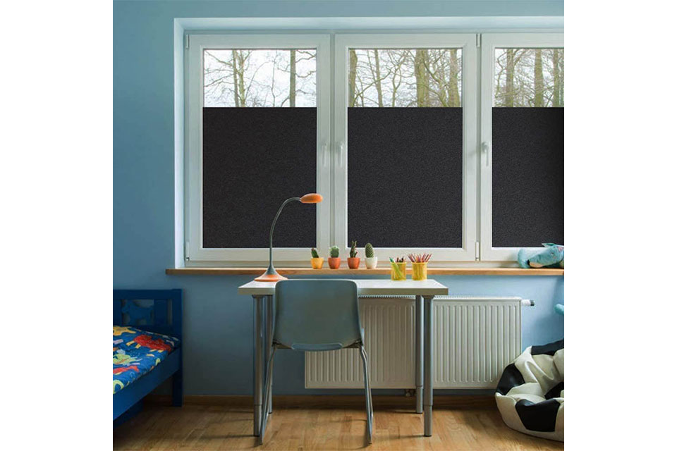 Lystett vindusfilm som stenger ute sollys og beskytter mot innsyn. Enkel å feste til vindusruten med vann.