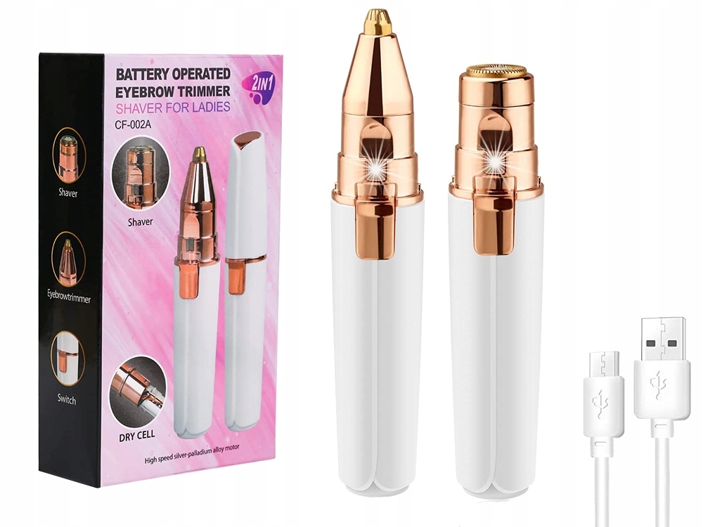 Designet for ansikt og øyenbryn, kommer den med et presisjonshode for øyenbryn og et hode for resten av ansiktet.