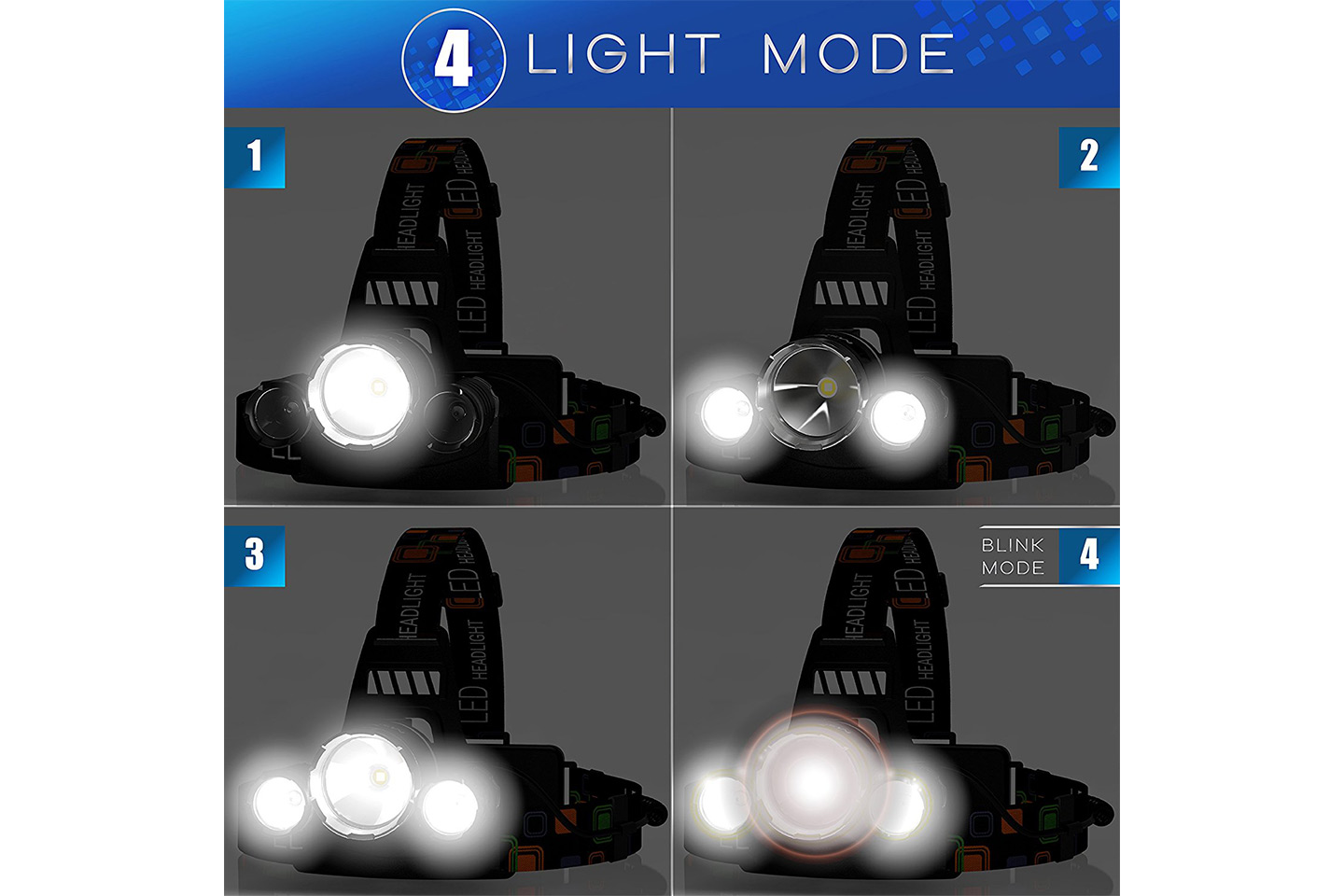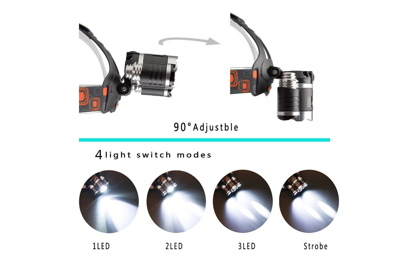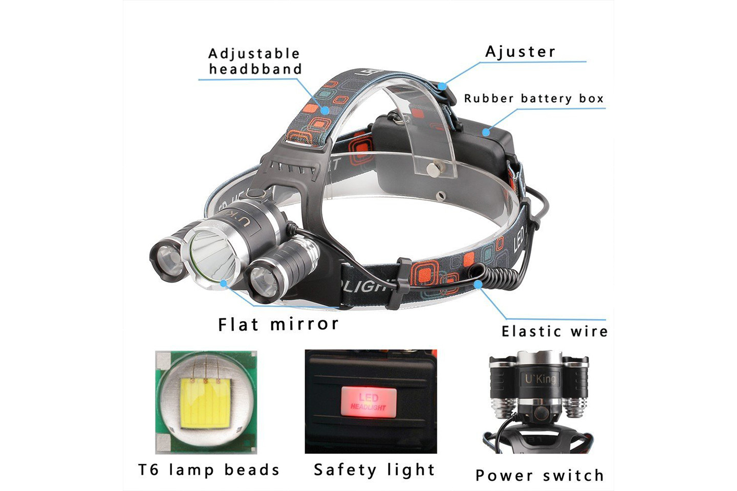 - Hodelykten har 3 x T6 CREE LED-lys med 5 000 lumen