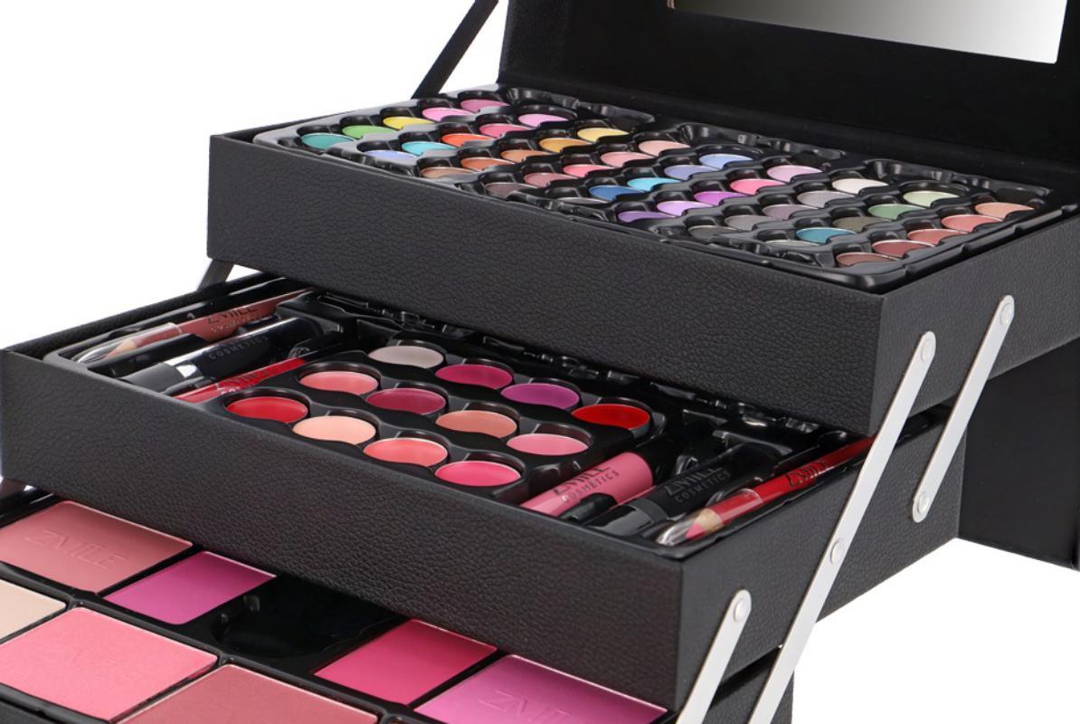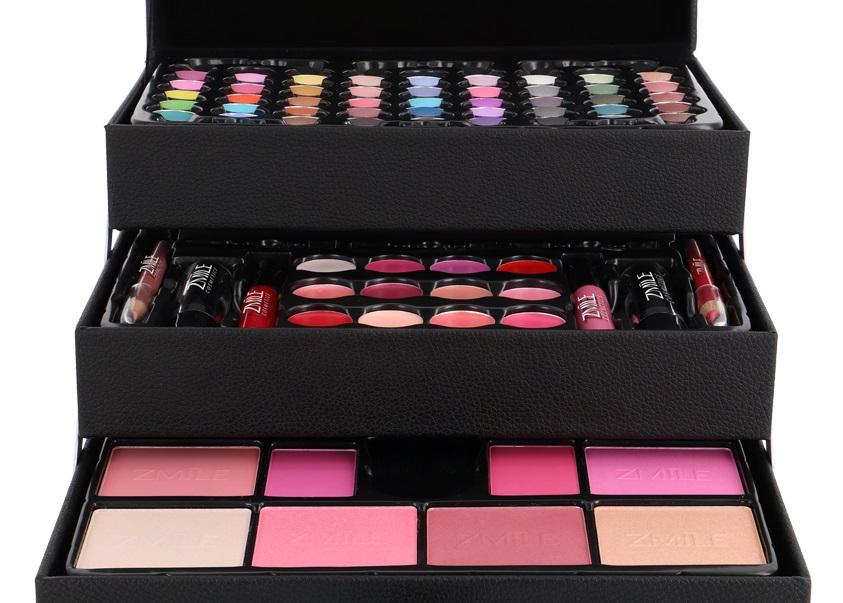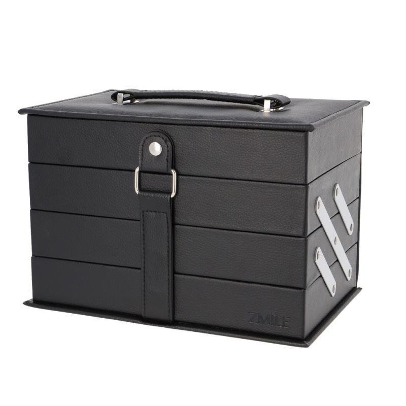 Zmile Cosmetics Beauty Case Black Vegan kommer i en stilig boks i kunstskinn og inneholder totalt 82 forskjellige deler.
