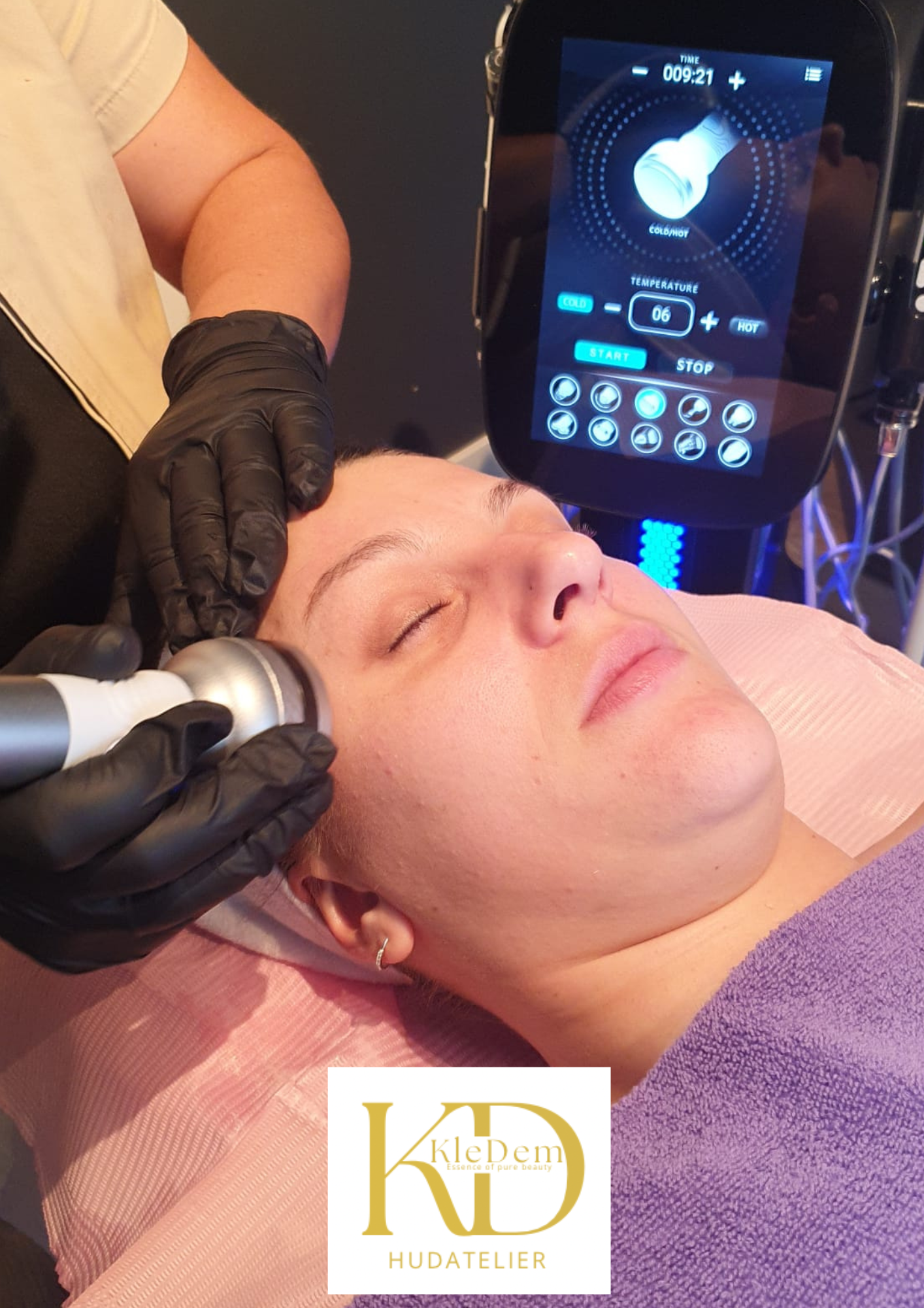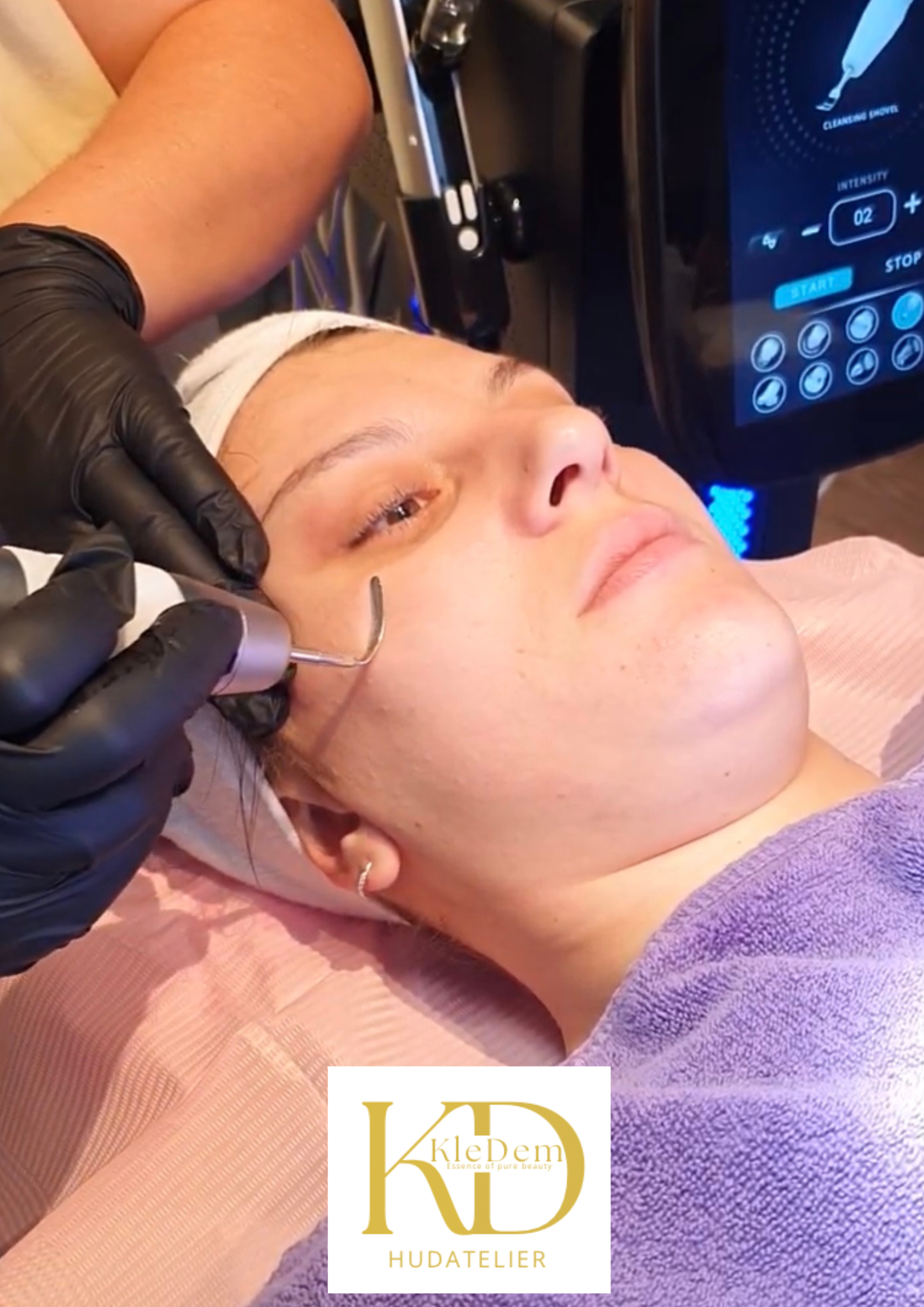 Ultralydvibrasjon fjerner skånsomt talg og døde hudceller. Serum med vitaminer og hyaluronsyre gir næring og glød. Perfekt for hud som ikke tåler mekanisk rens.