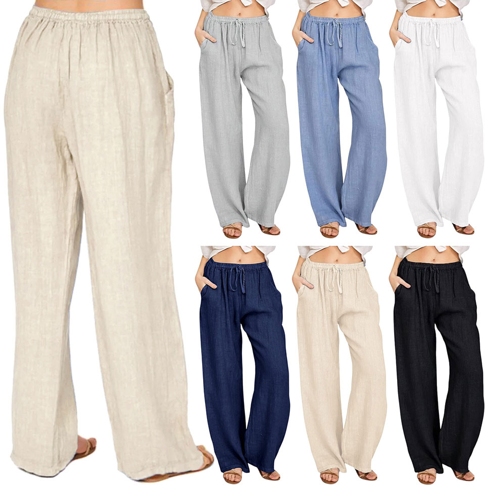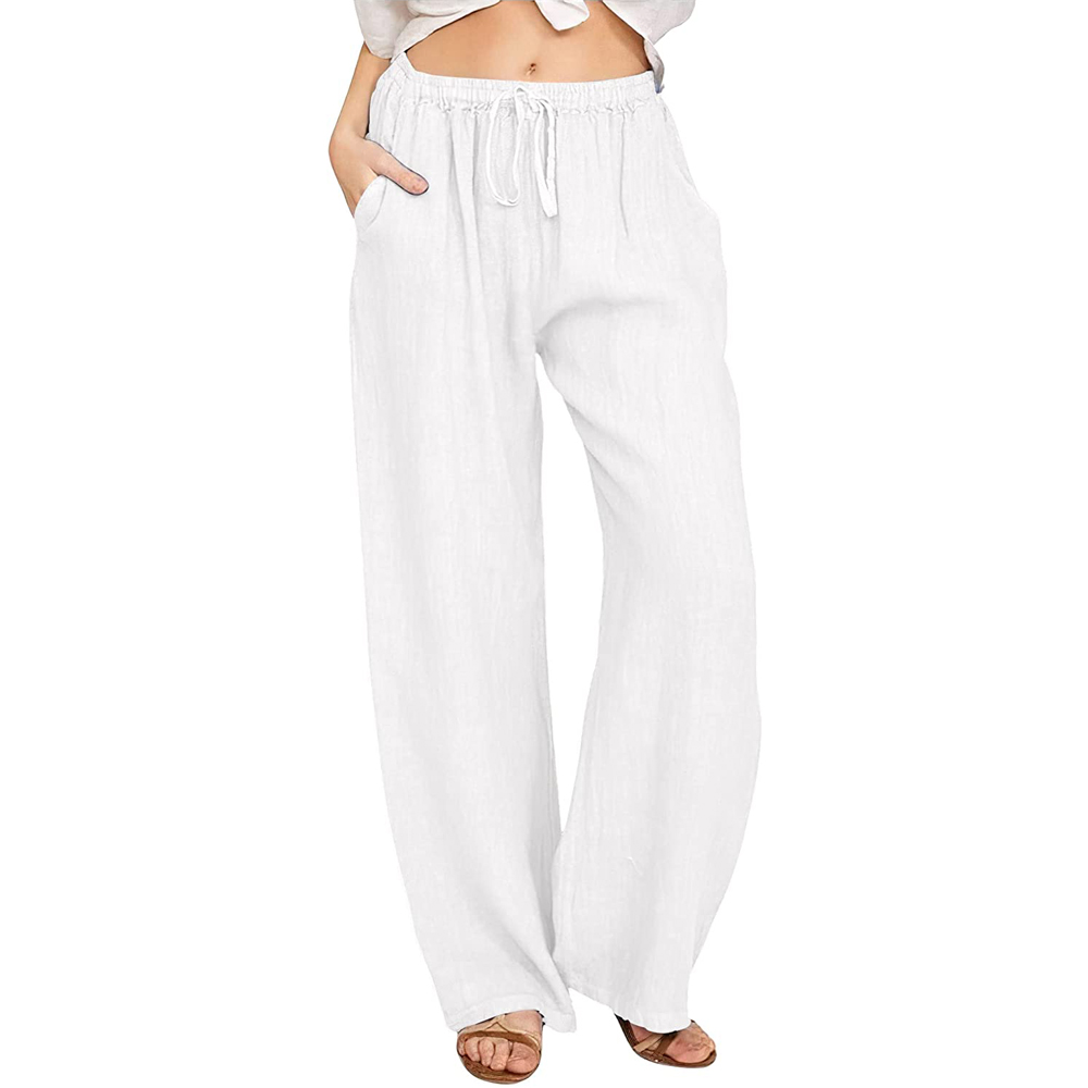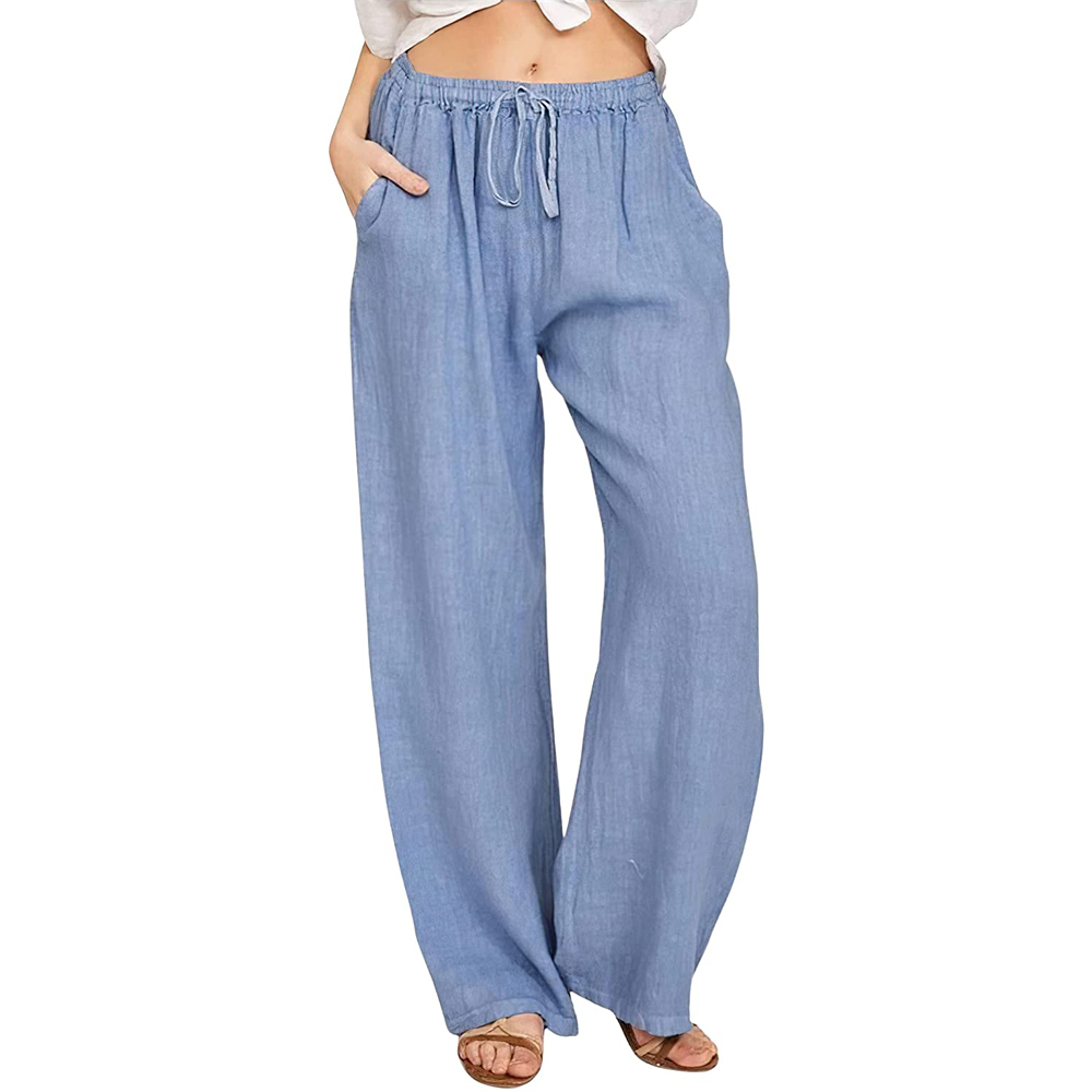 Bomullsbukse med vide ben og avslappet passform. Buksen har snøring rundt midjen og to frontlommer.