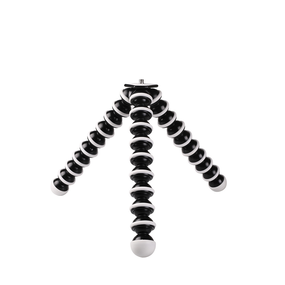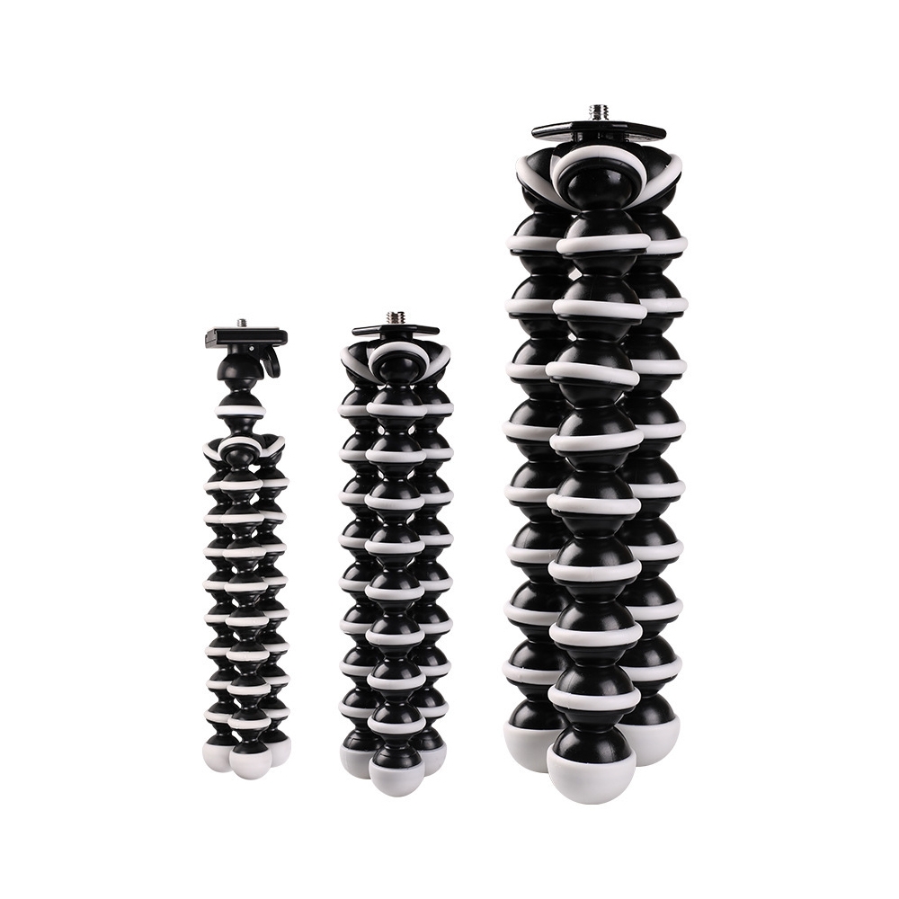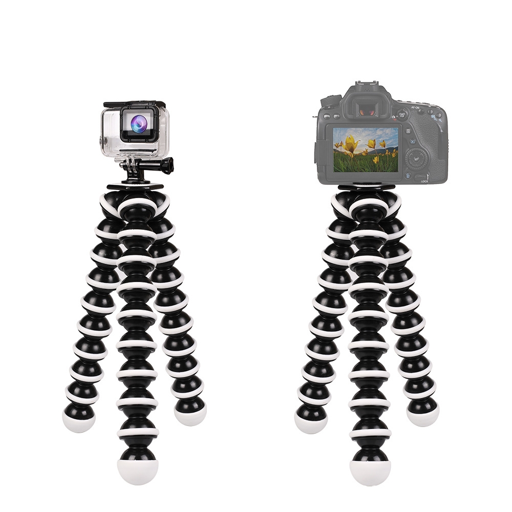 Stativ med fleksible ben og gummiert overflate for actionkamera. Lett og kompakt design, passer i en skulderveske eller ryggsekk. 360 graders rotasjon, bruk som stativ eller holder. Kompatibel med kamera og go pro.