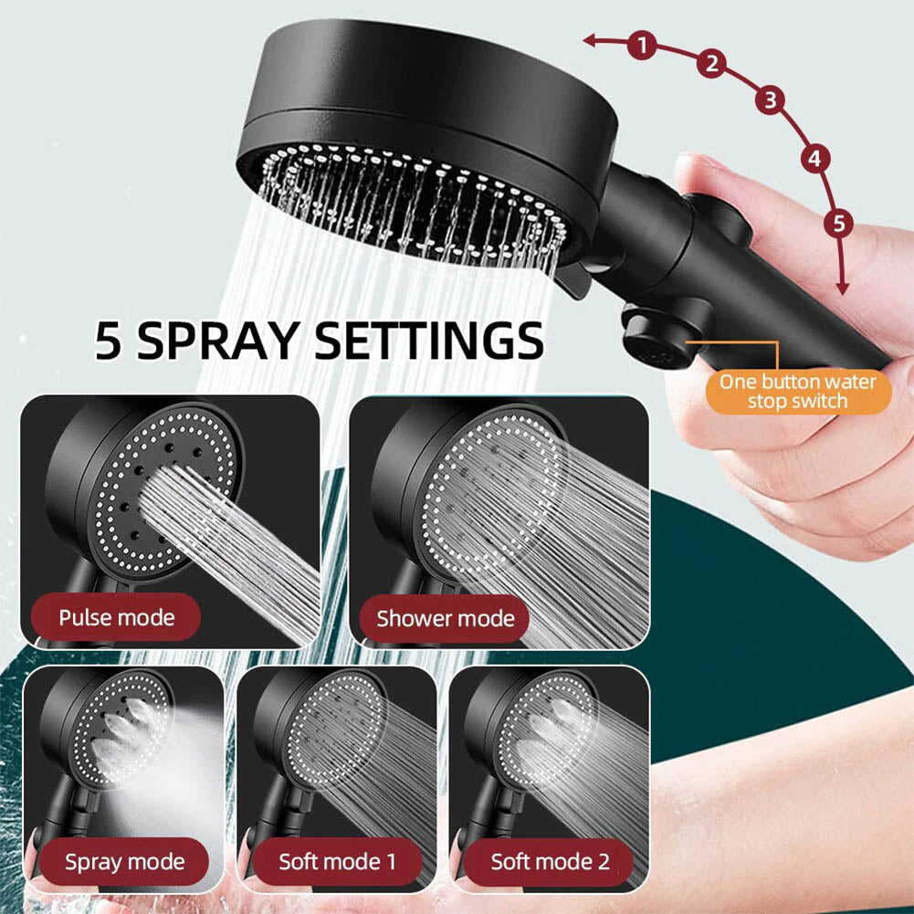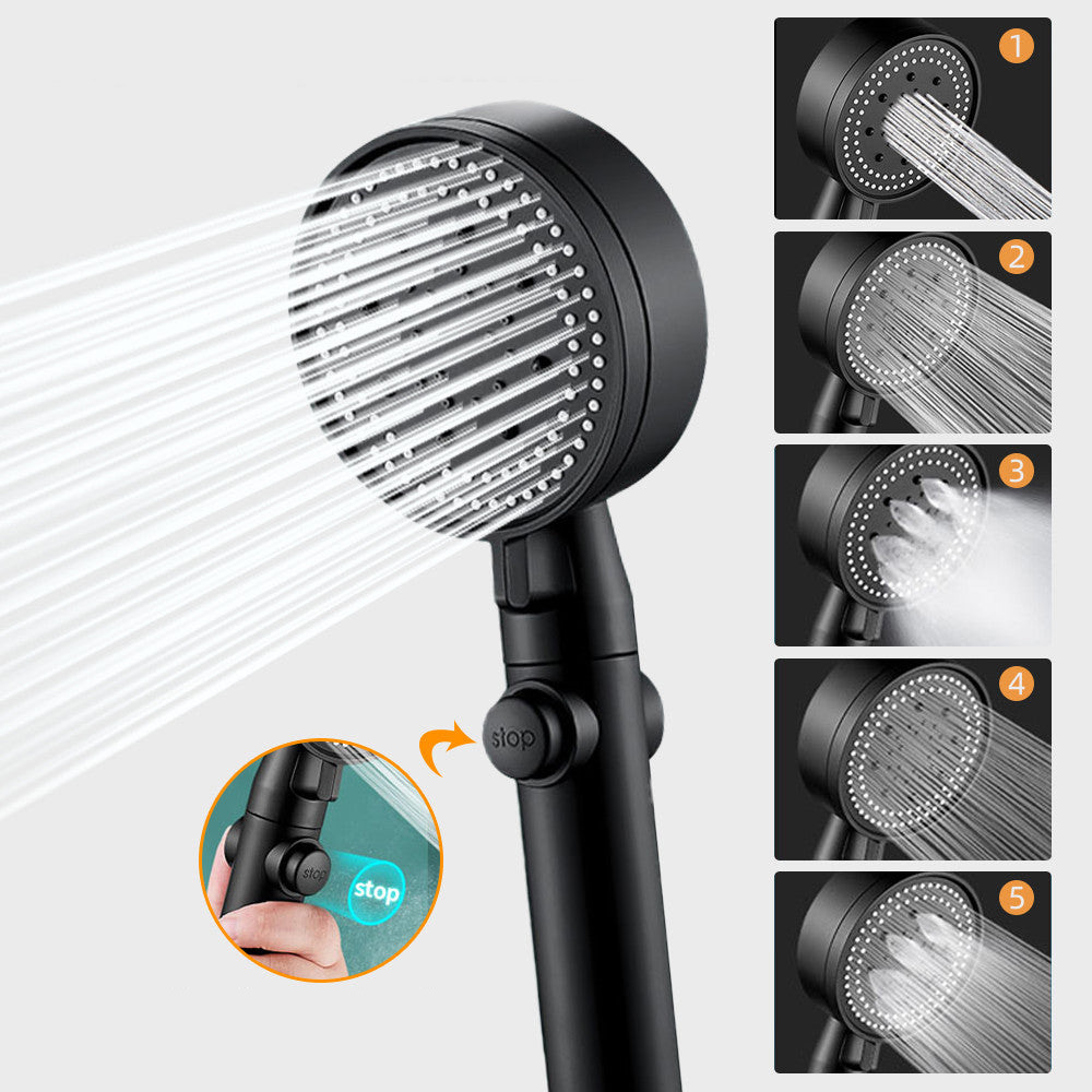 Dusjmunnstykke utstyrt med fem forskjellige justerbare innstillinger og justering av vanntrykket. Høyintensitetsvann lindrer muskelsmerter og sikrer optimal ytelse selv i installasjoner med lavt vanntrykk.