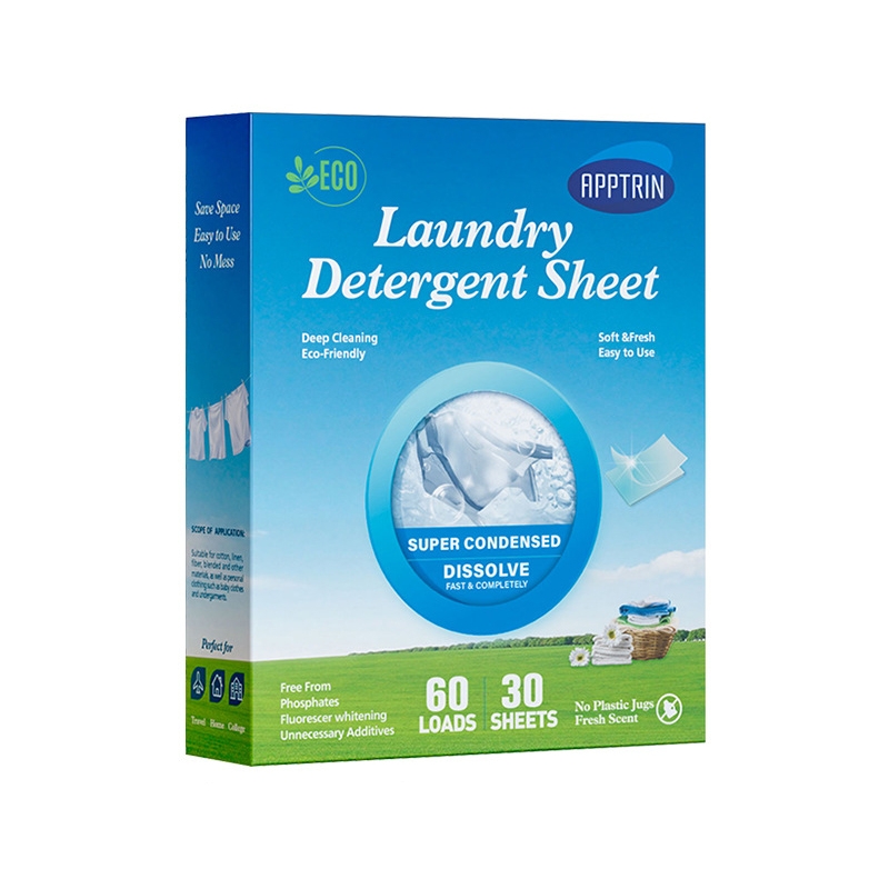 Detergentarket oppløses effektivt i både kaldt og varmt vann og kan brukes til både farge og hvit håndvask og maskinvask og for alle materialer. Svak parfymerte for en frisk duft. Detergentarket er urte med biologiske enzymer for effektiv rengjøring og bakteriedrepende effekt. Velg mellom: 30-pack, 60-pack og 120-pack.