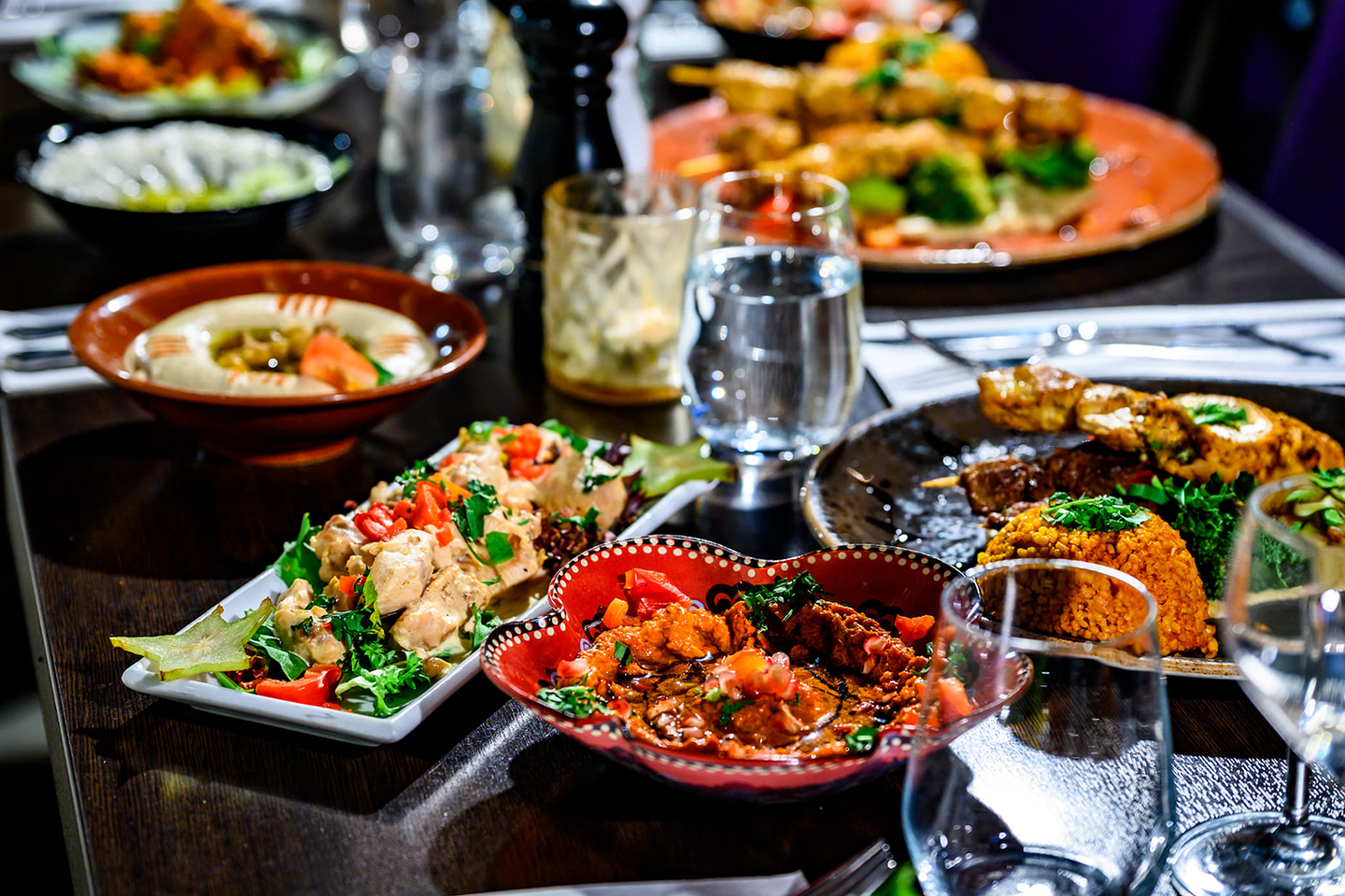 Ta med venner og familie for en eksklusiv opplevelse av Midtøsten i Oslo, passer både nykommere og kjennere av mat fra Middelhavet. Du nyter en 8-retters Mezze: tasting meny av de beste rettene! Se menyen nedenfor.