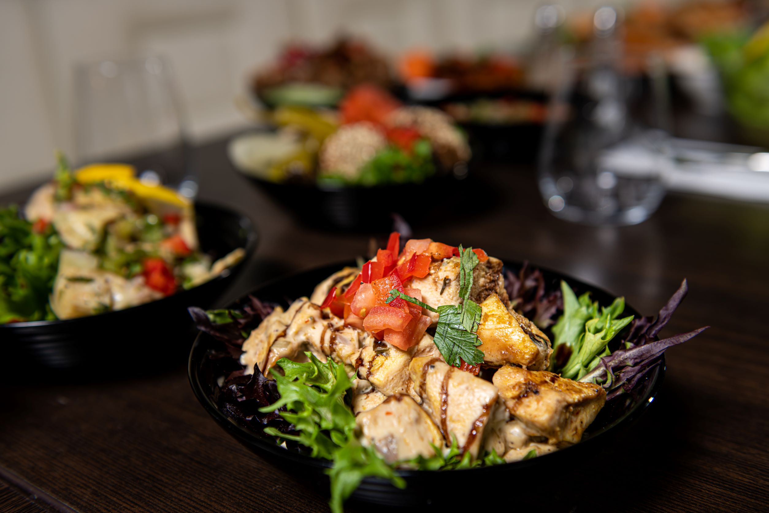 Marinated chicken in sesame oil, yoghurt, garlic and Arabic spices