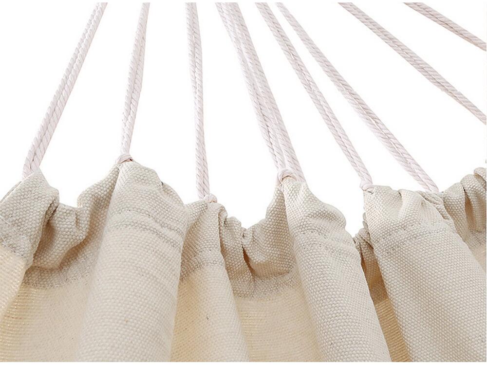 Hengekøyen er laget av slitesterkt materiale, det samme er de tyktvevde snorene. Alt dette gjør hengekøyen slitesterk og pustende, det vil være veldig hyggelig å bruke den.