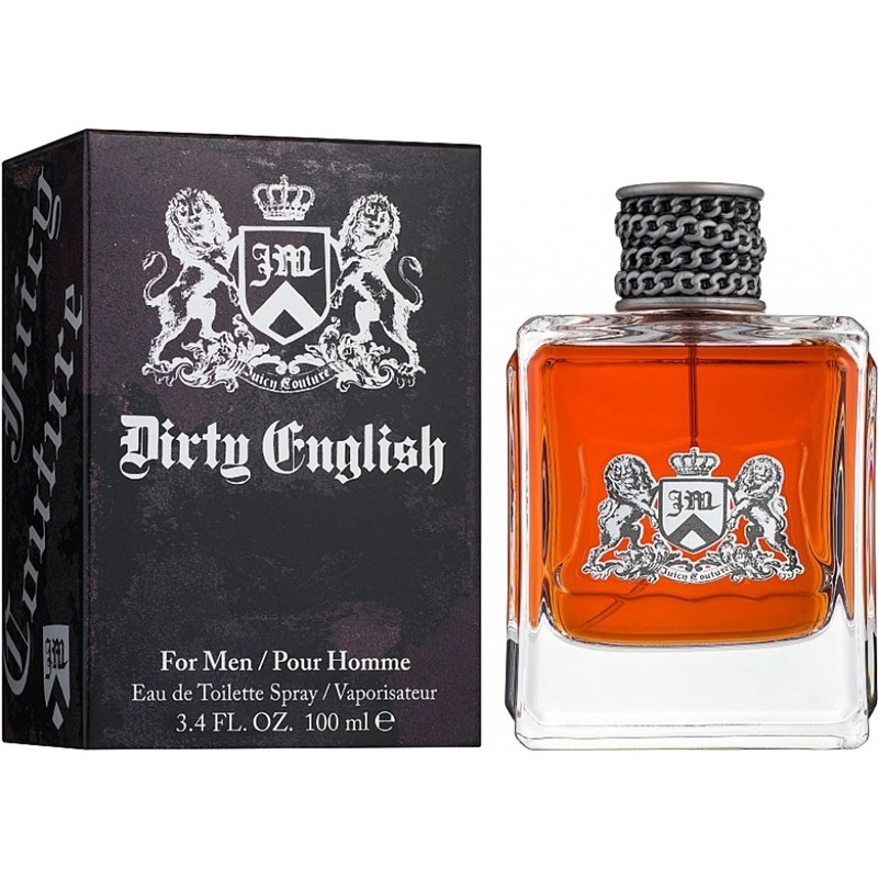 Juicy Couture Dirty English er en moderne og maskulin duft med toner av spisskummen, kardemomme, svart lær, sandeltre og svart mose.