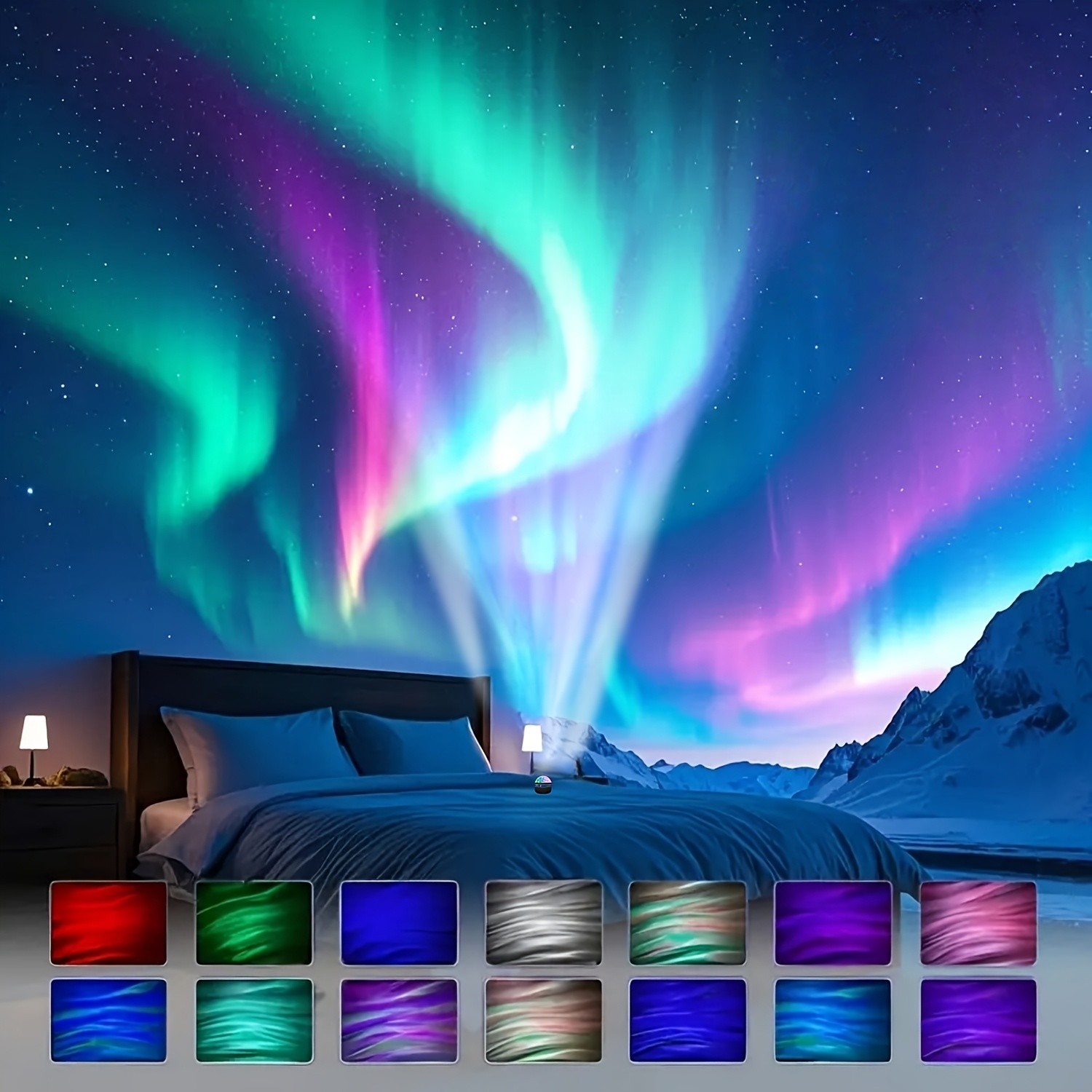 - Effekter: 7 fargemoduser for aurora, kombinerbare med havbølgeeffekt