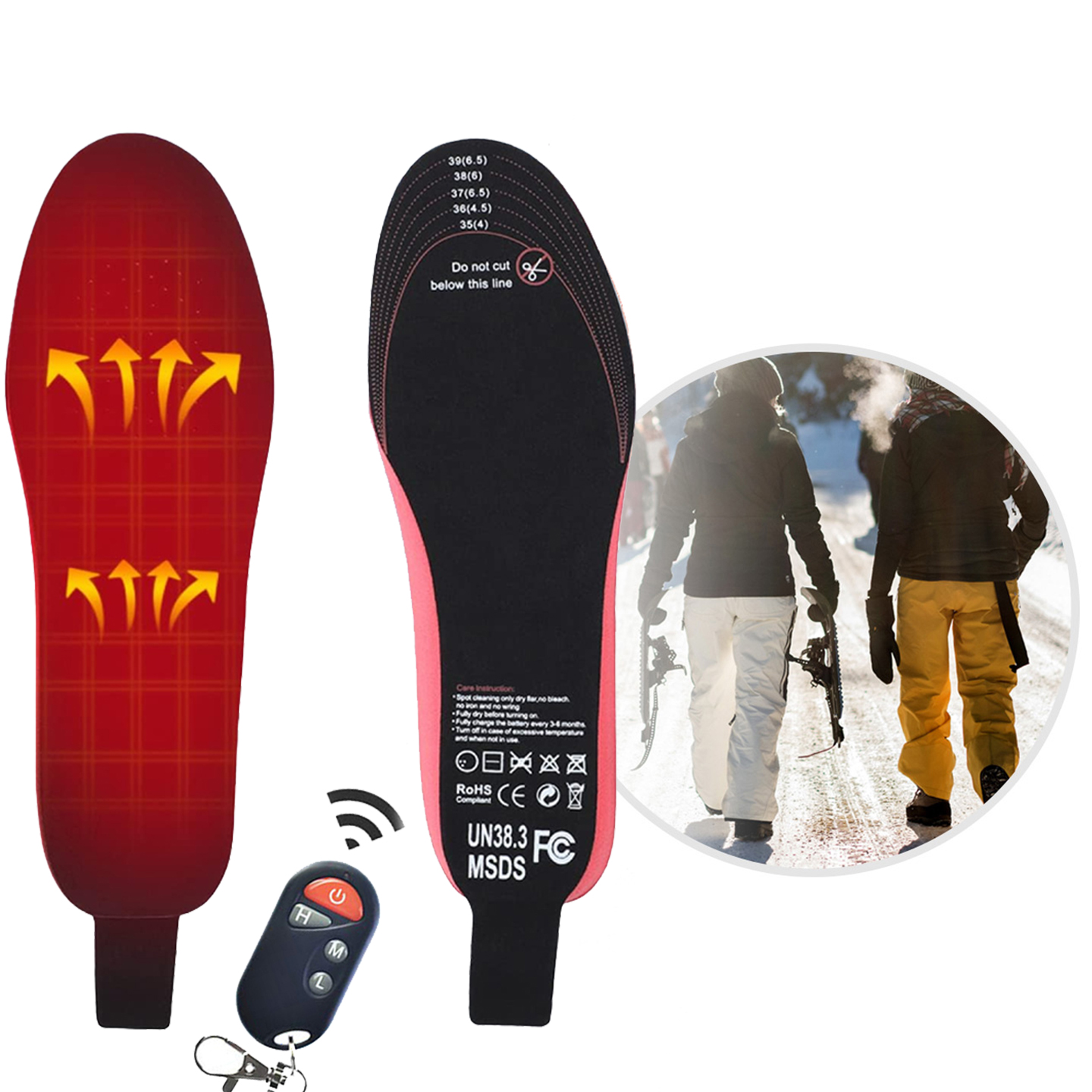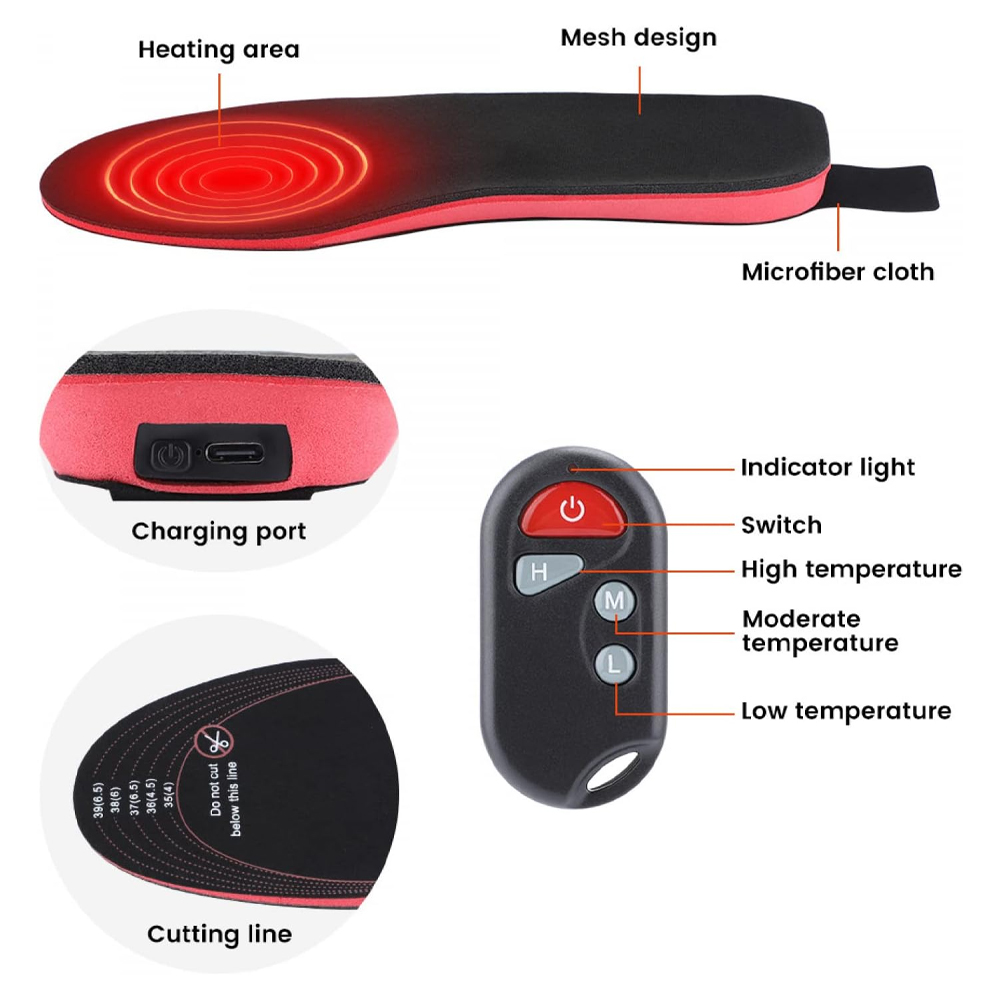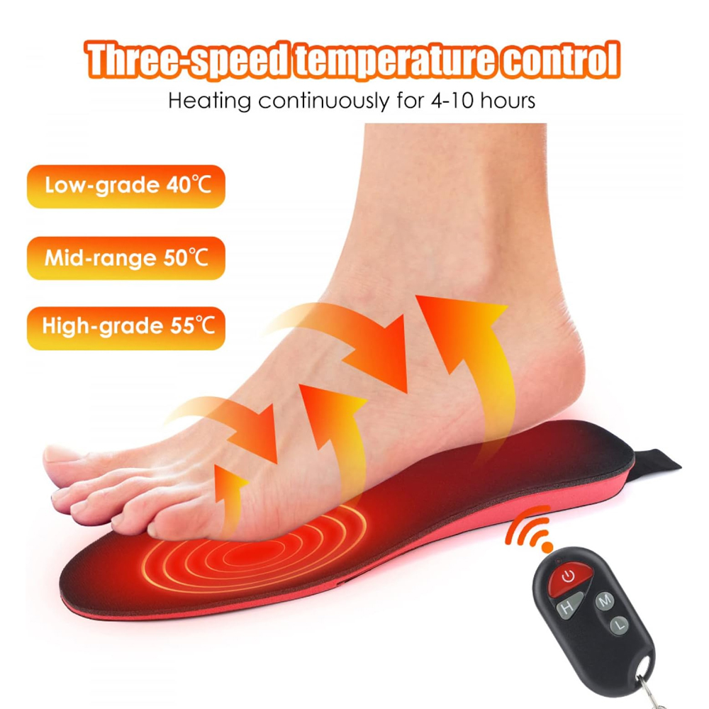 - Oppladbare oppvarmede innleggssåler med fjernkontroll