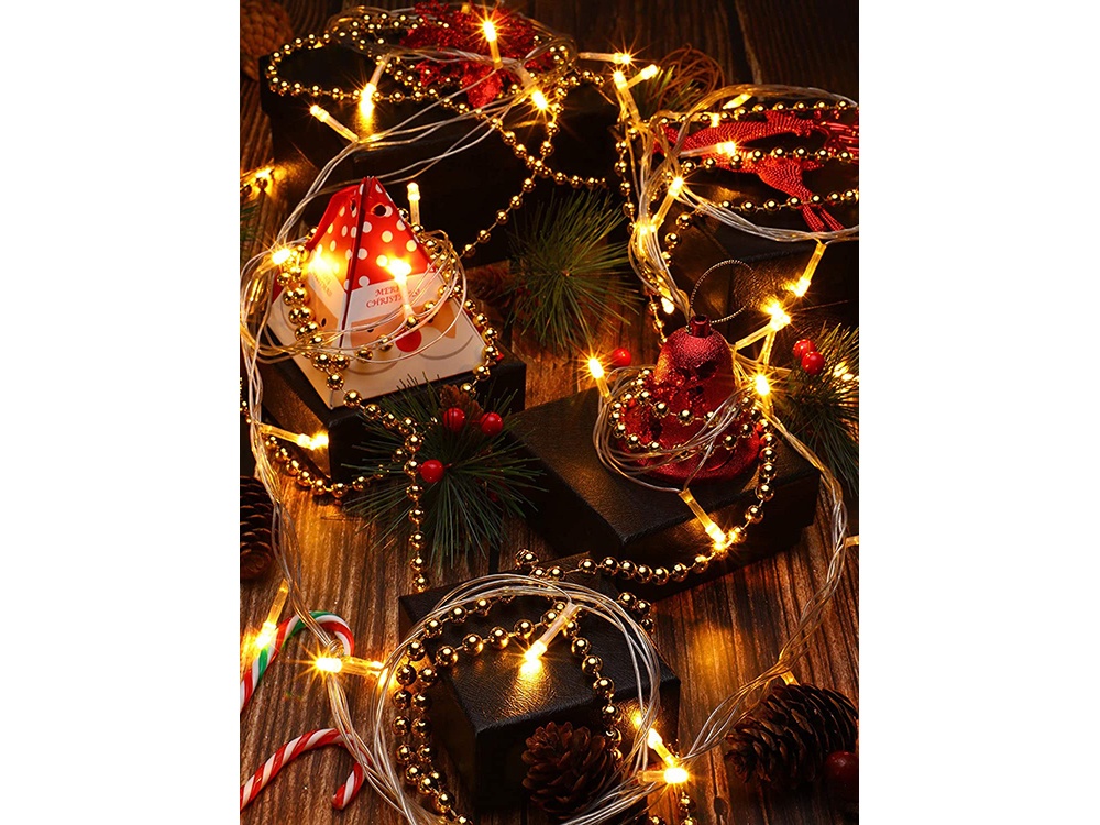 Skap en glitrende julestemning med denne elegante perlegirlanderen på fem meter! Girlanderen reflekterer lyset vakkert og gir juletreet, bordet eller hjemmets dekorasjoner et eksklusivt preg. Et stilfullt alternativ til tradisjonell julepynt som varer i mange sesonger.