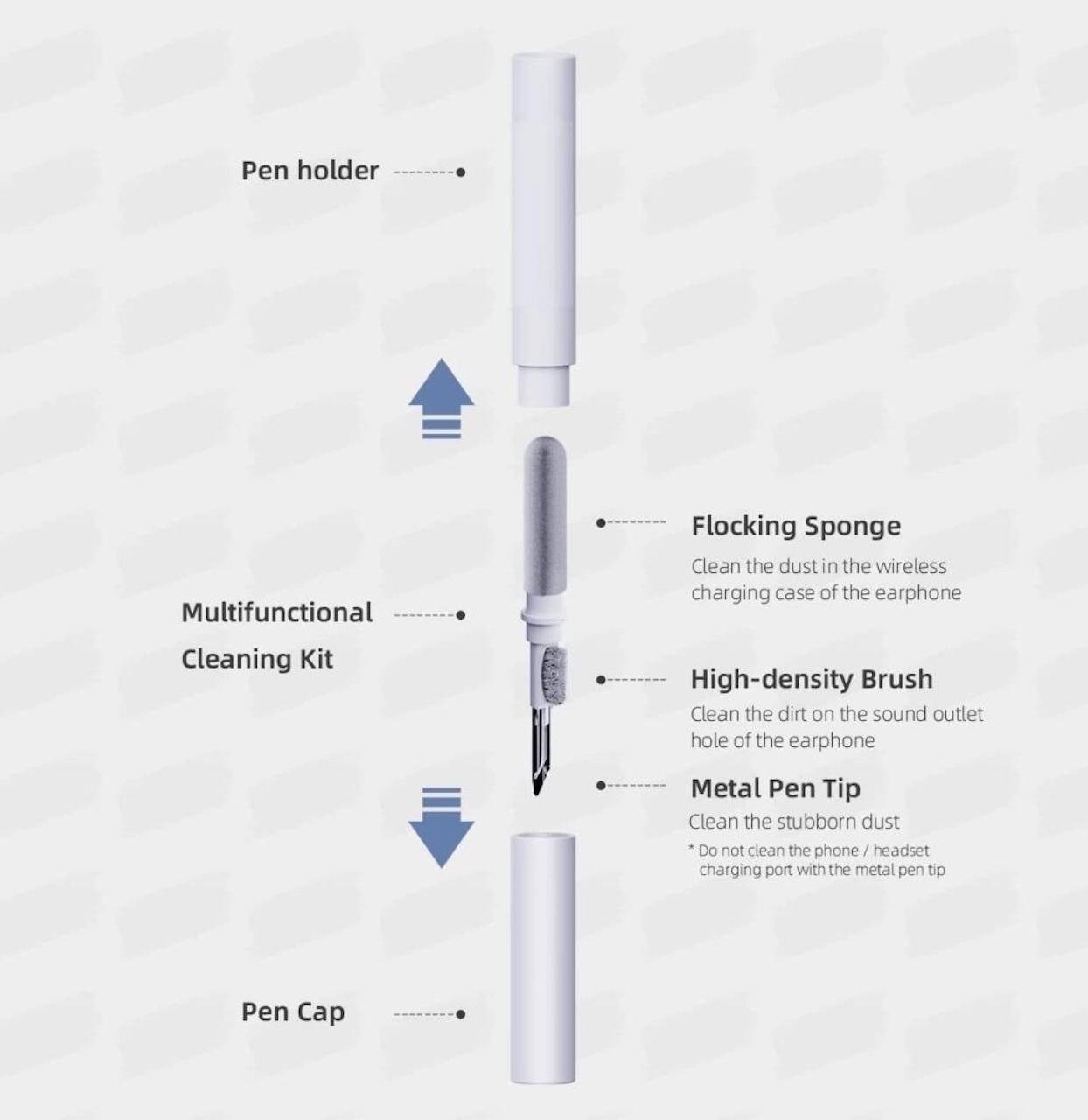 Fiks til AirPods (alle generasjoner) med de forskjellige innebygde multifunksjonelle verktøyene: en rensepenn med metallspiss, en myk og tett børste, og den smidige flockesvampen. Rensekittet kommer lett til rundt hjørner og andre vanskelig tilgjengelige områder.