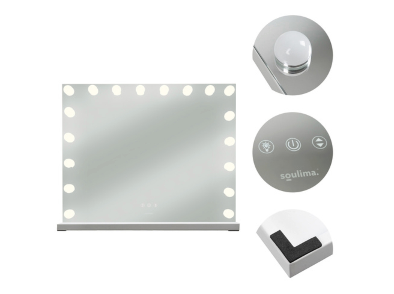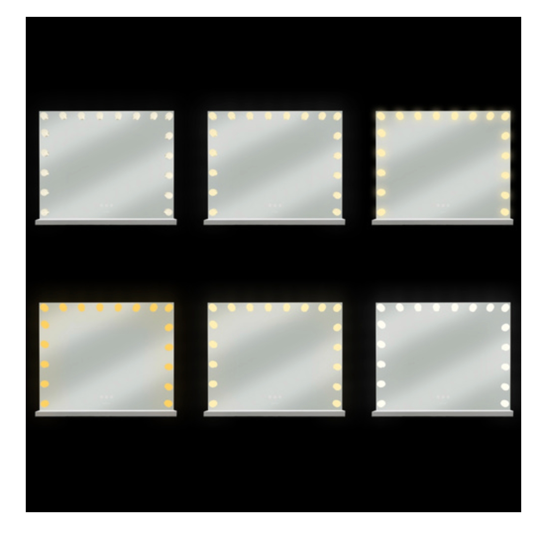 Få en luksuriøs sminkeopplevelse hjemme med et Hollywoodinspirert speil med justerbar belysning. Tre lysinnstillinger i varm, nøytral og kaldhvit tone hjelper deg å få perfekt sminke til enhver anledning. Speilet kan plasseres på bord eller monteres på vegg og gir et elegant preg til ethvert rom.